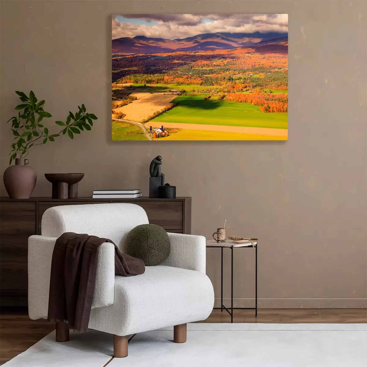 Tableau : Vue aérienne du paysage rural lors de feuillage d'automne avec Mt. Maman