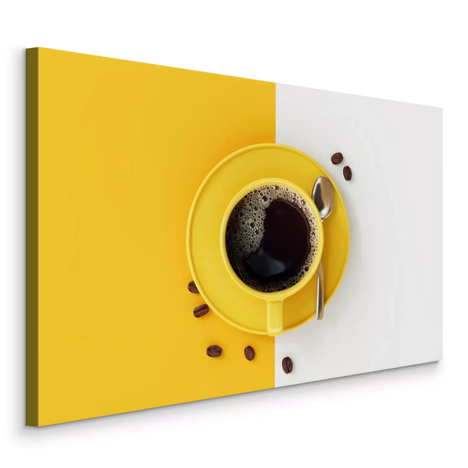 Tableau  Vue de dessus de la tasse à café sur fond jaune et blanc.