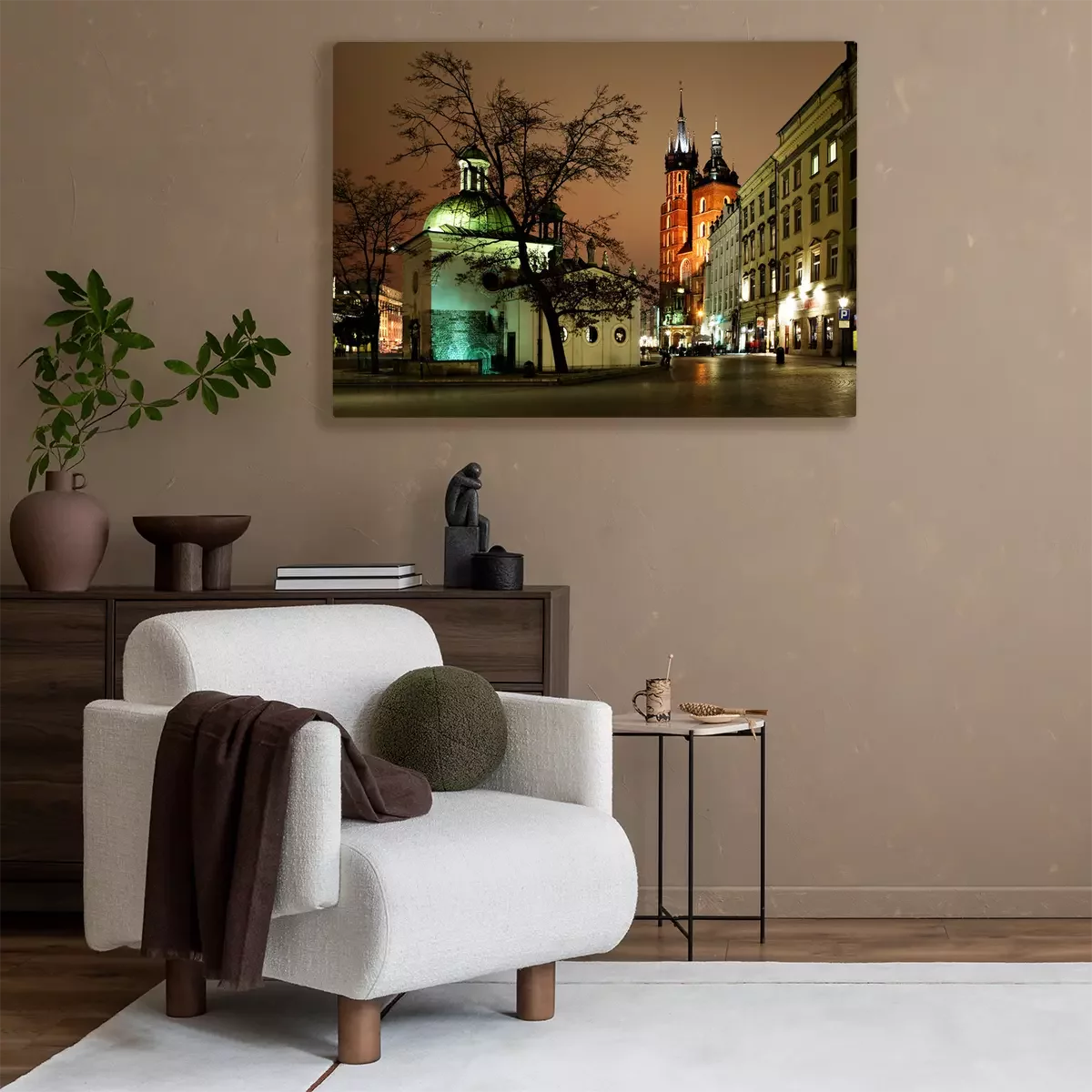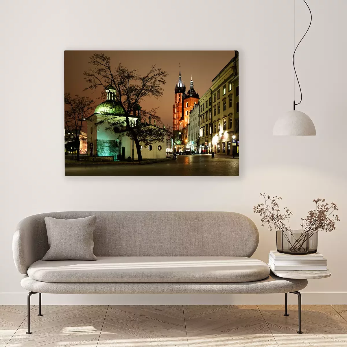 Tableau : Vue de nuit de la Place du Marché à Cracovie, en Pologne