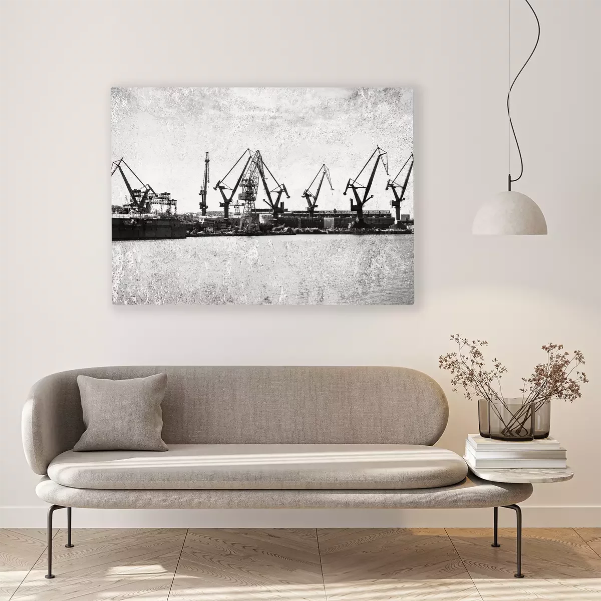 Vue du chantier naval de gdańsk depuis la voie navigable