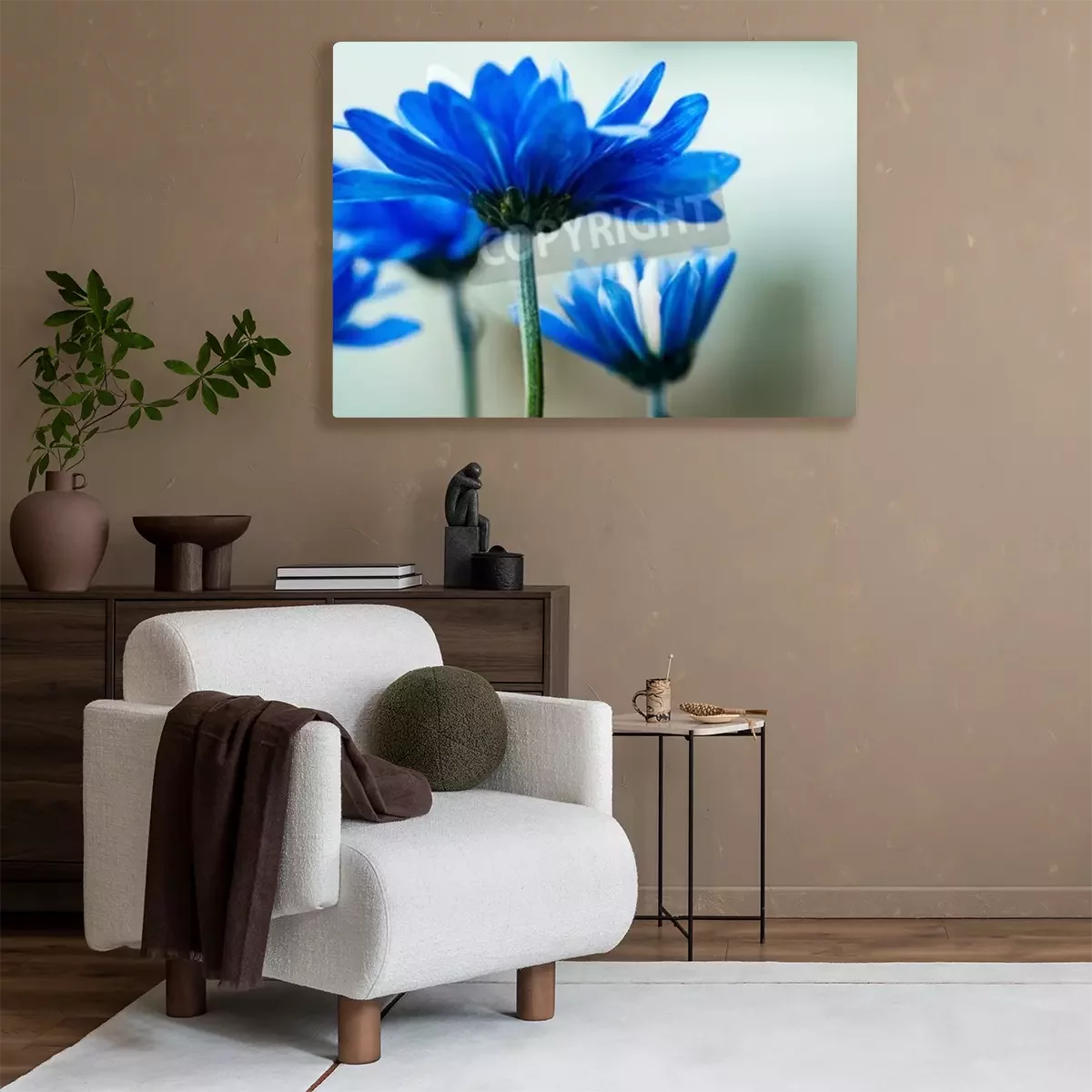 Tableau  Vue macro macro de plusieurs marguerites bleues dans un jardin