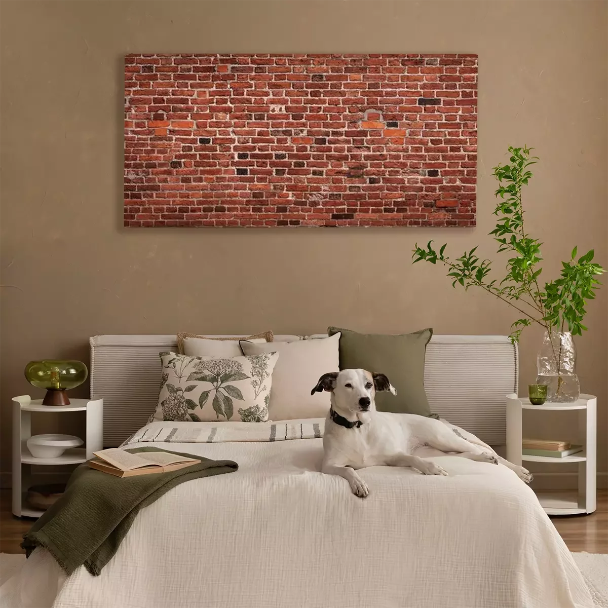 Tableau  Vue panoramique de fond de mur de briques rouges vides, vieux, avec espace de copie