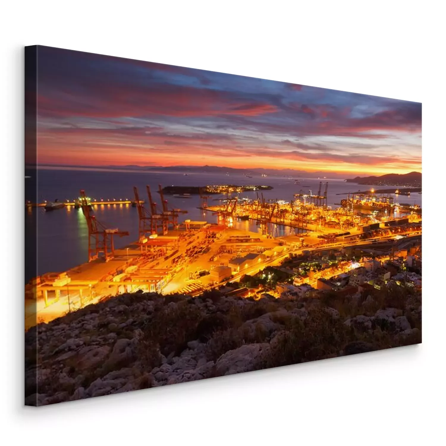 Tableau  Vue, piraeus, port, athénie, contre, contreforts, aegaleo, montagnes