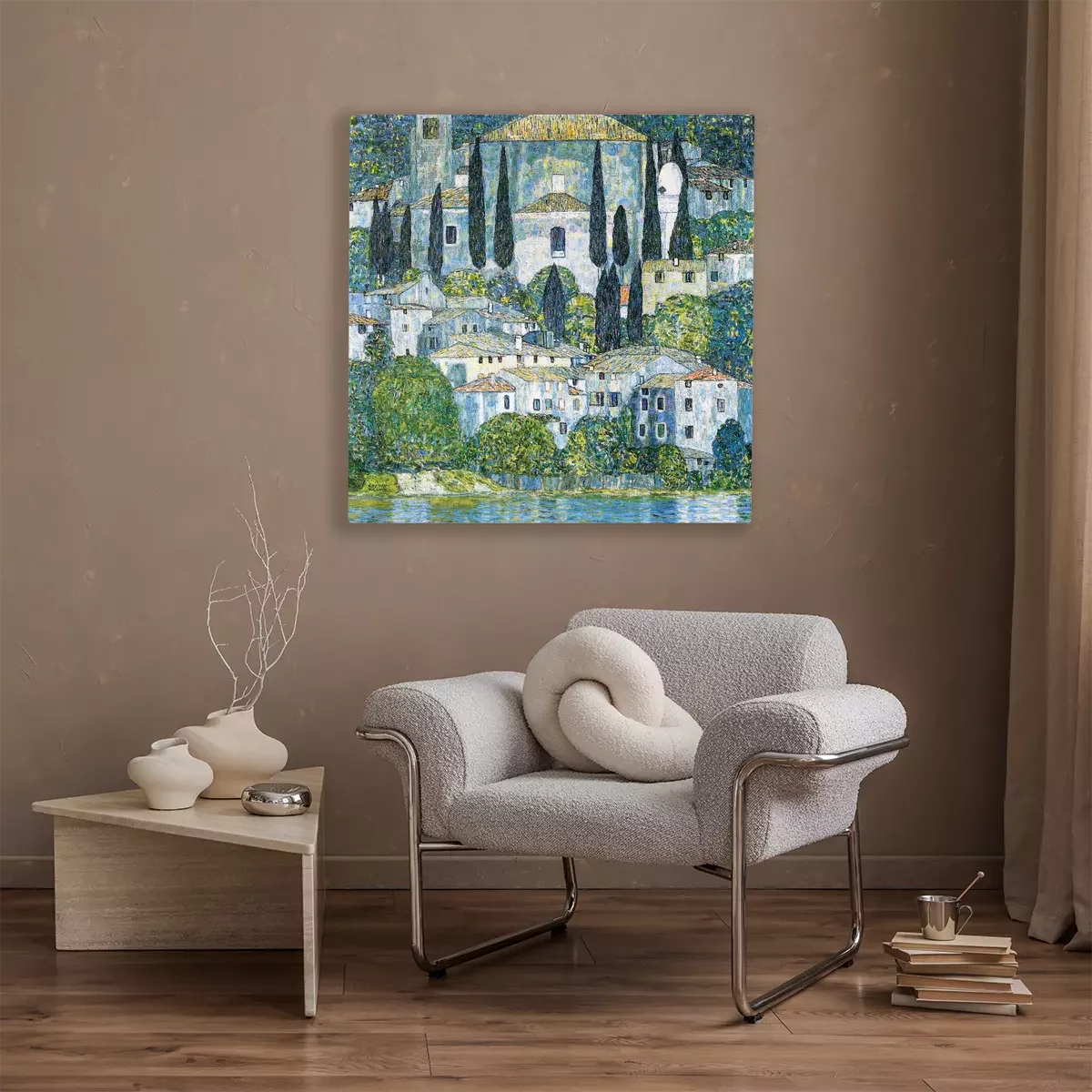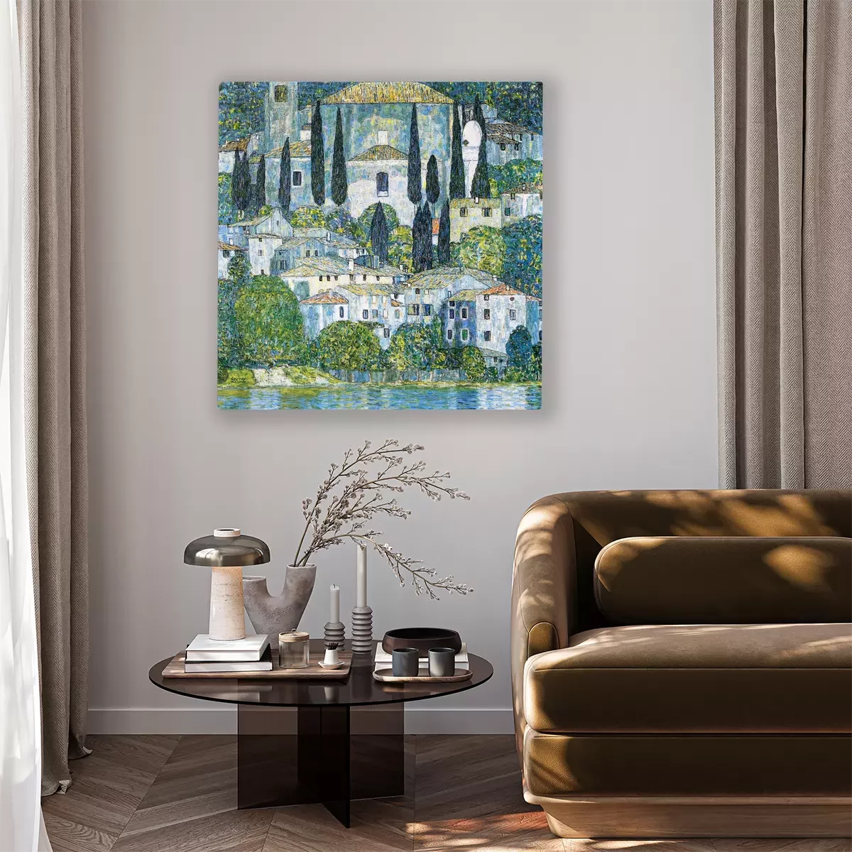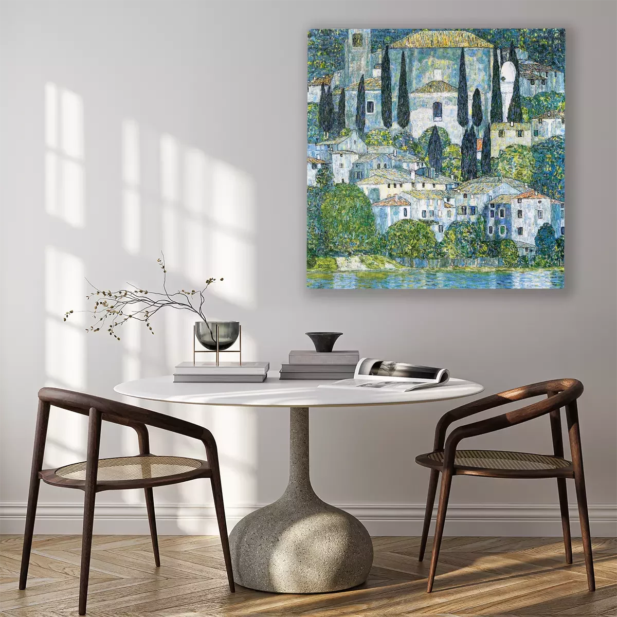 Tableau : Vue pittoresque de l'église au milieu des collines méditerranéennes