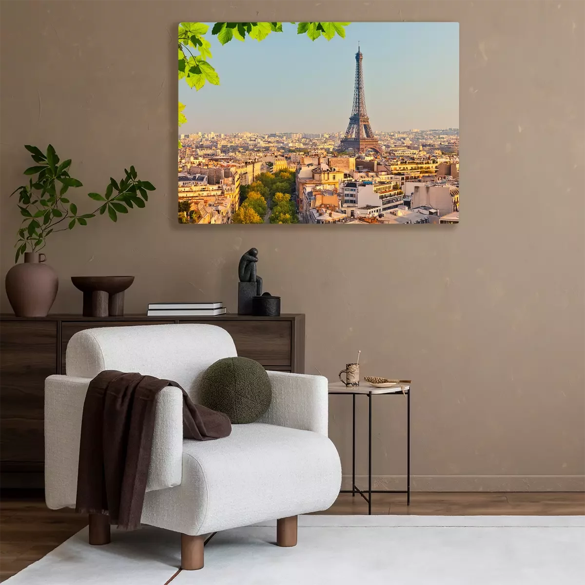 Feuilles vertes et panorama de Paris