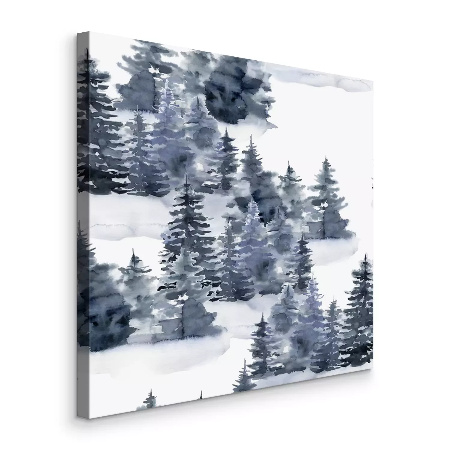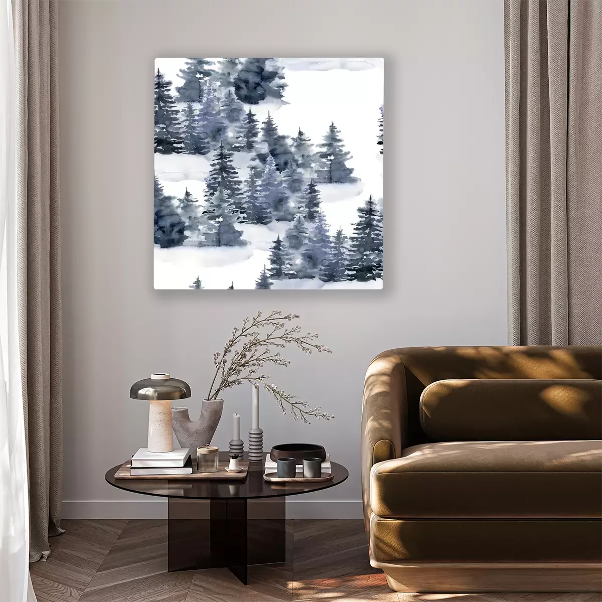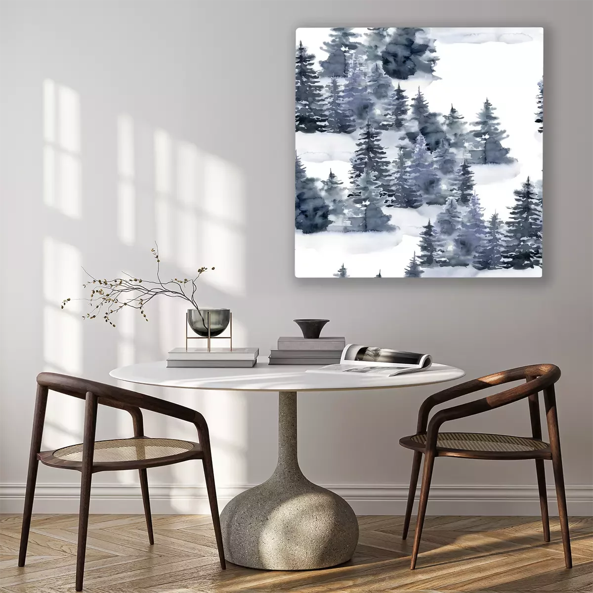 Tableau  Watercolor Christmas seamless pattern with winter forest. Hand painted foggy fir trees and snow illustration isolated on white background. Holiday illustration for design, print, fabric or background.