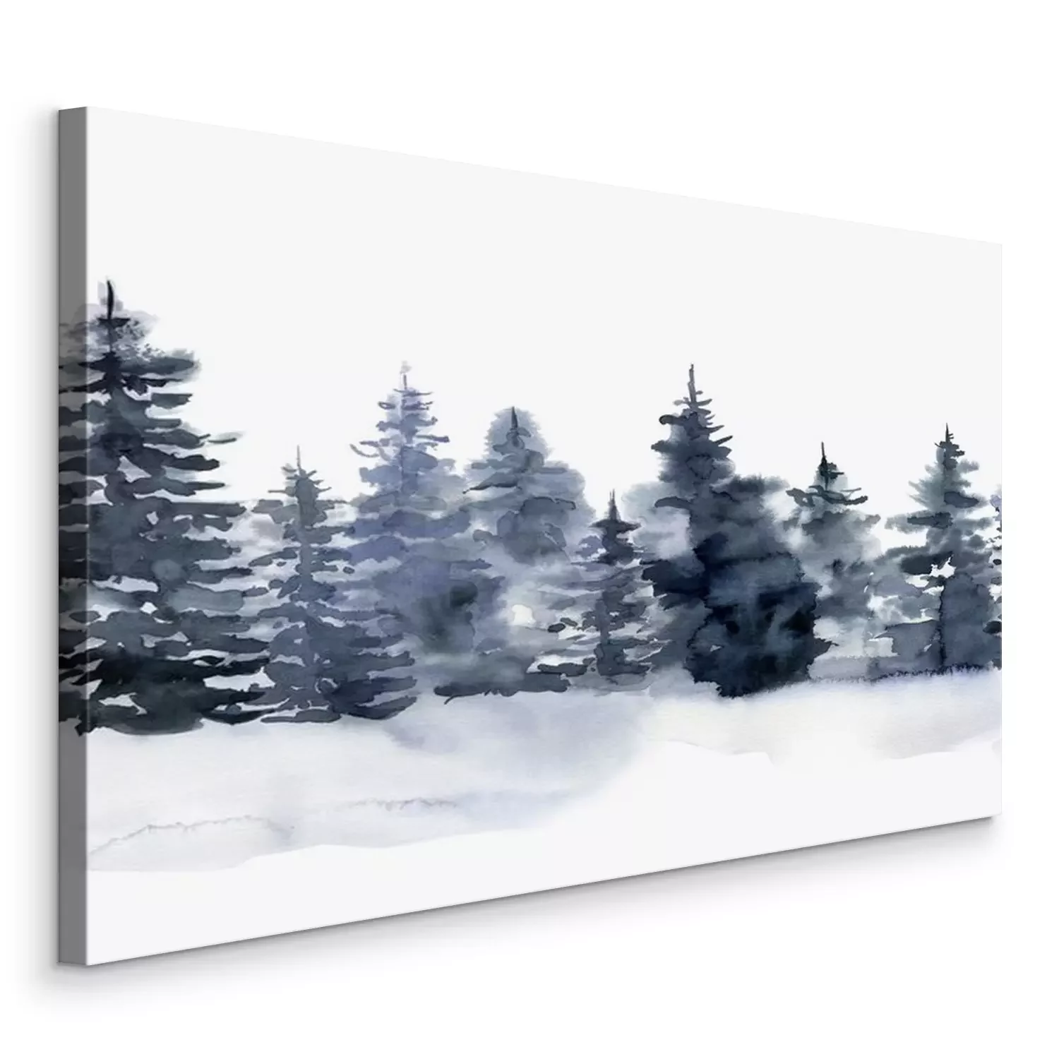 Tableau  Watercolor seamless border with winter forest. Hand painted foggy fir trees illustration isolated on white background. Holiday clip art for design, print, fabric or background. Christmas card.