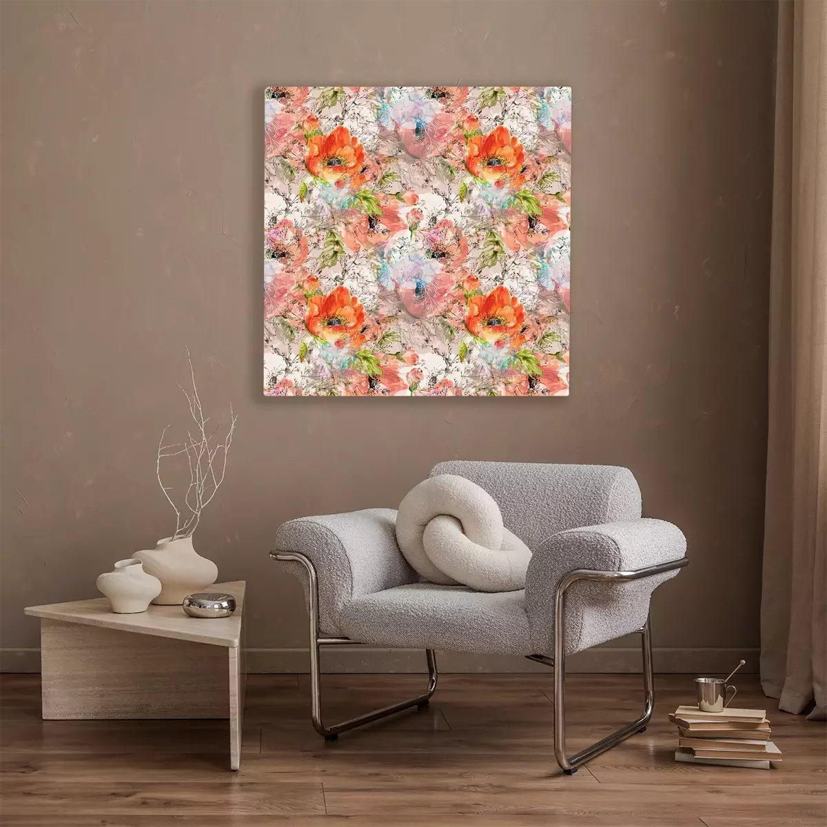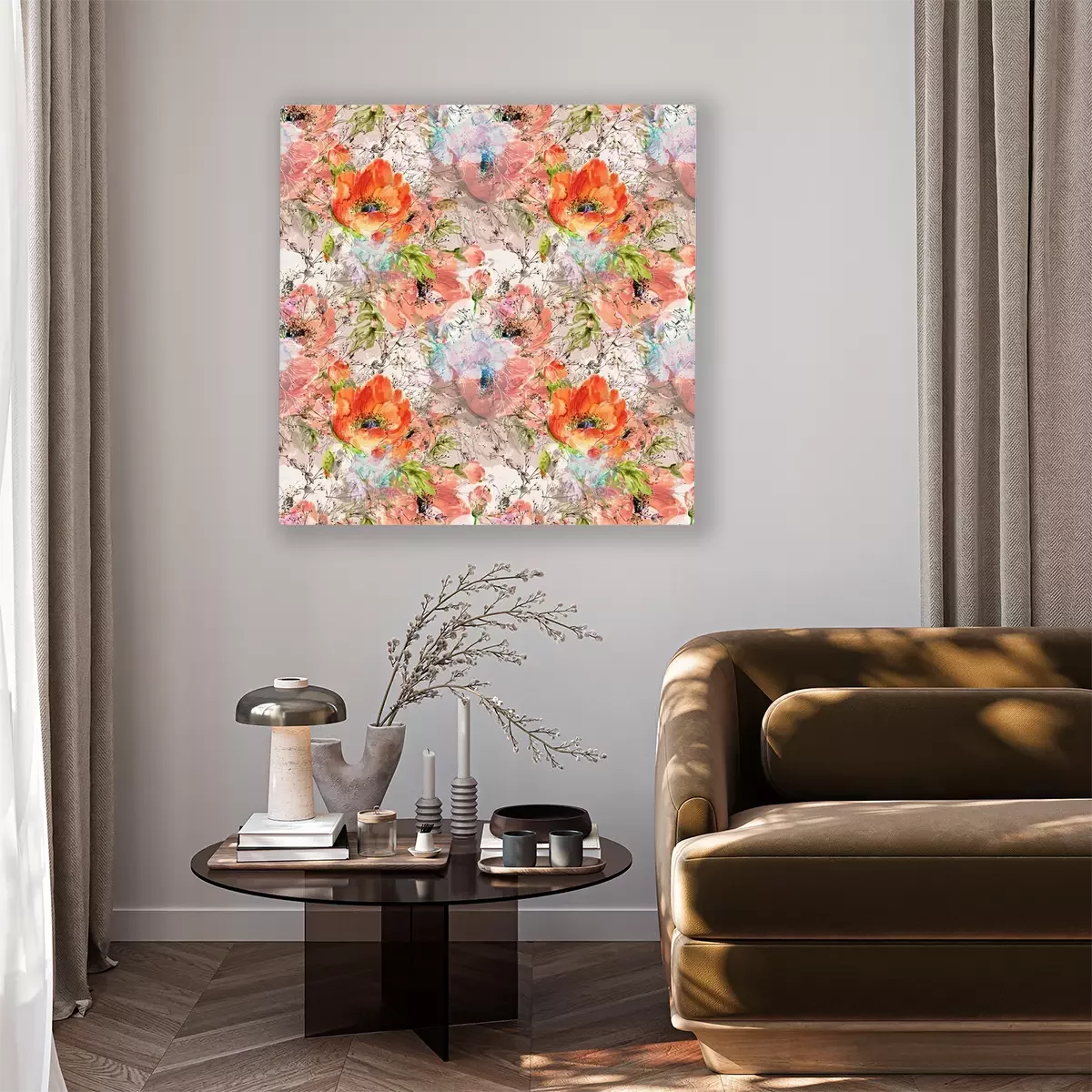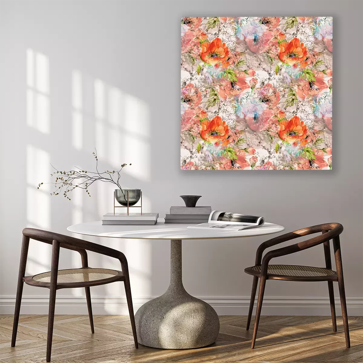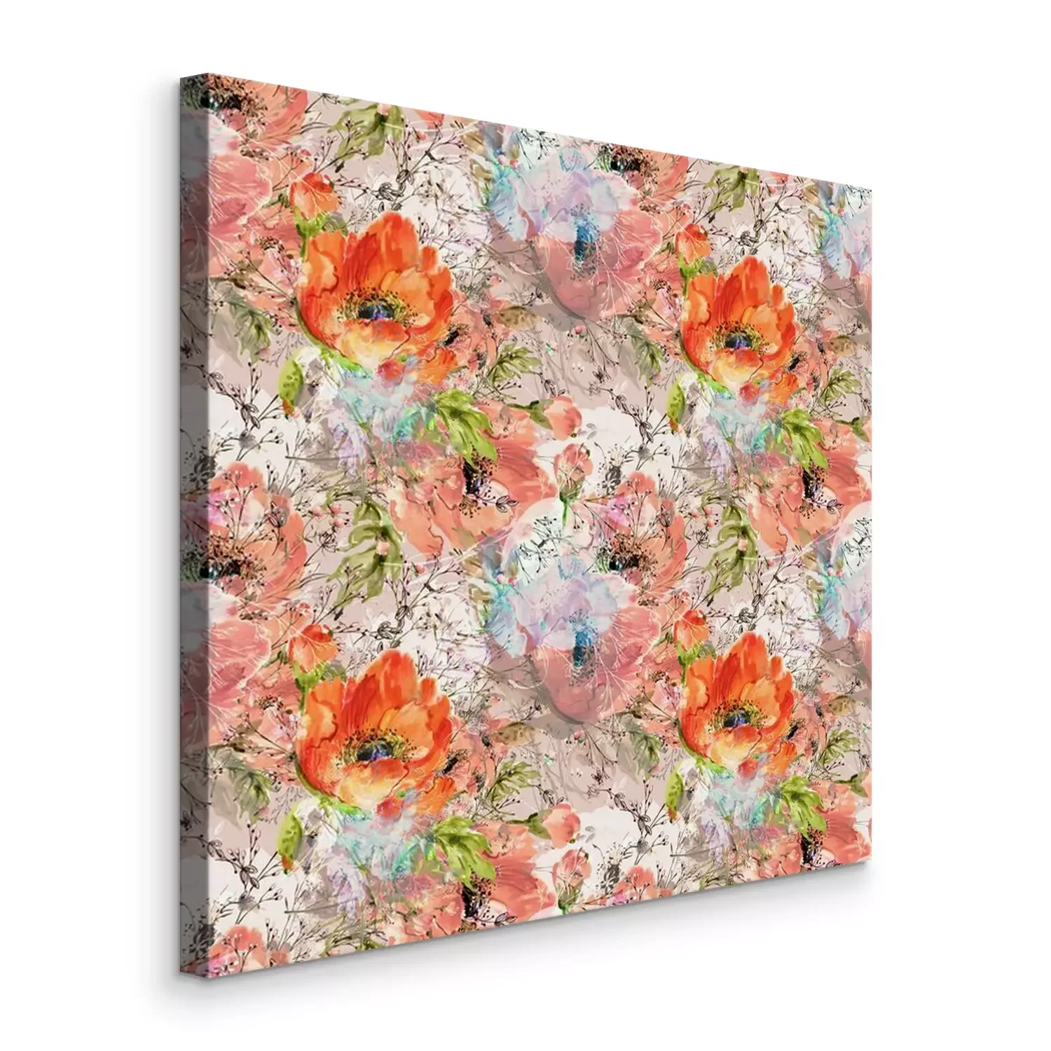 Tableau   Watercolor seamless pattern of wild poppies and grass