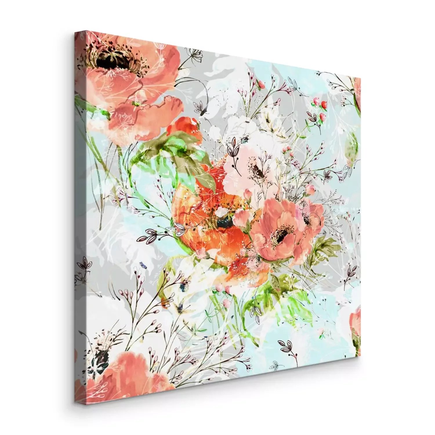 Tableau : Watercolor seamless pattern of wild poppies and grass