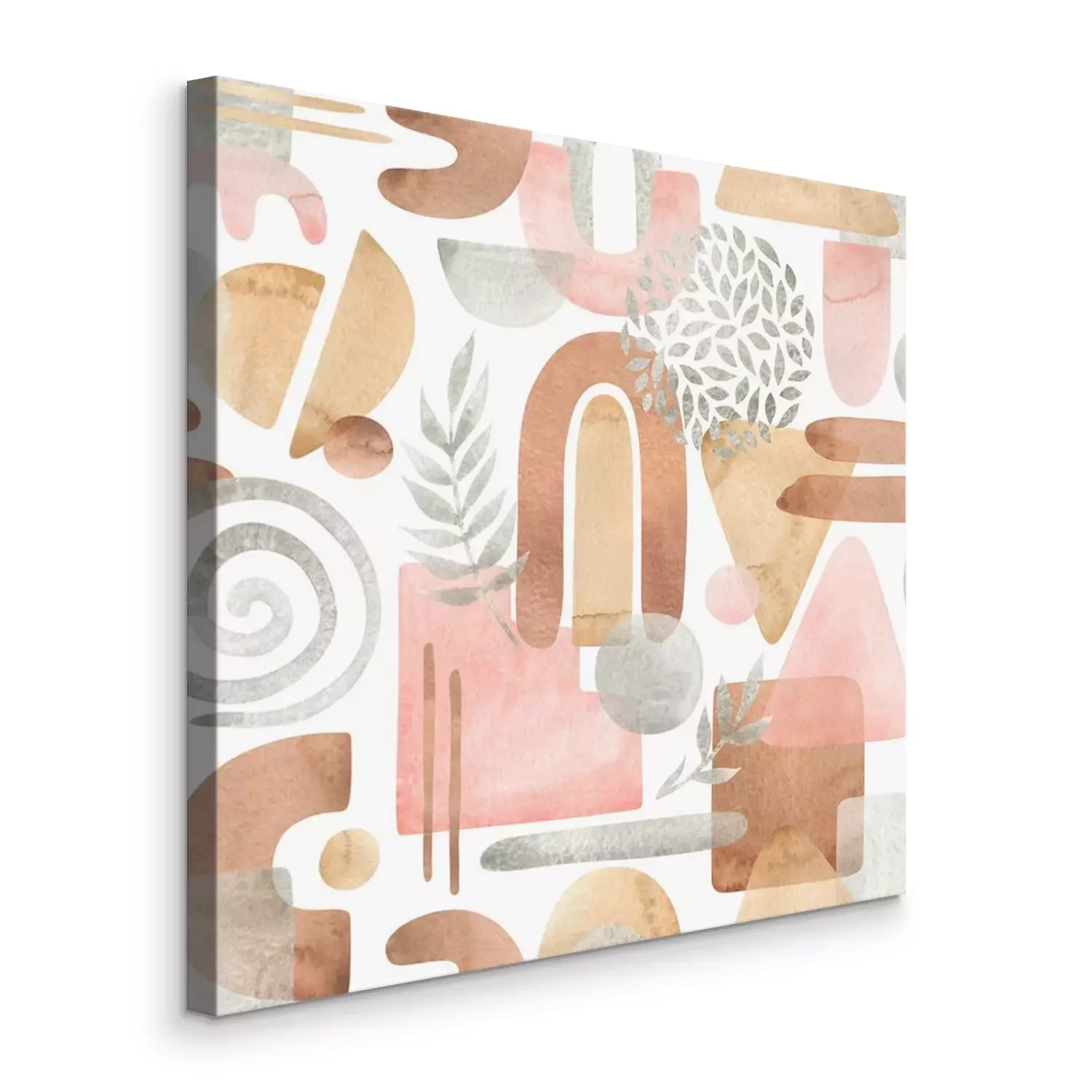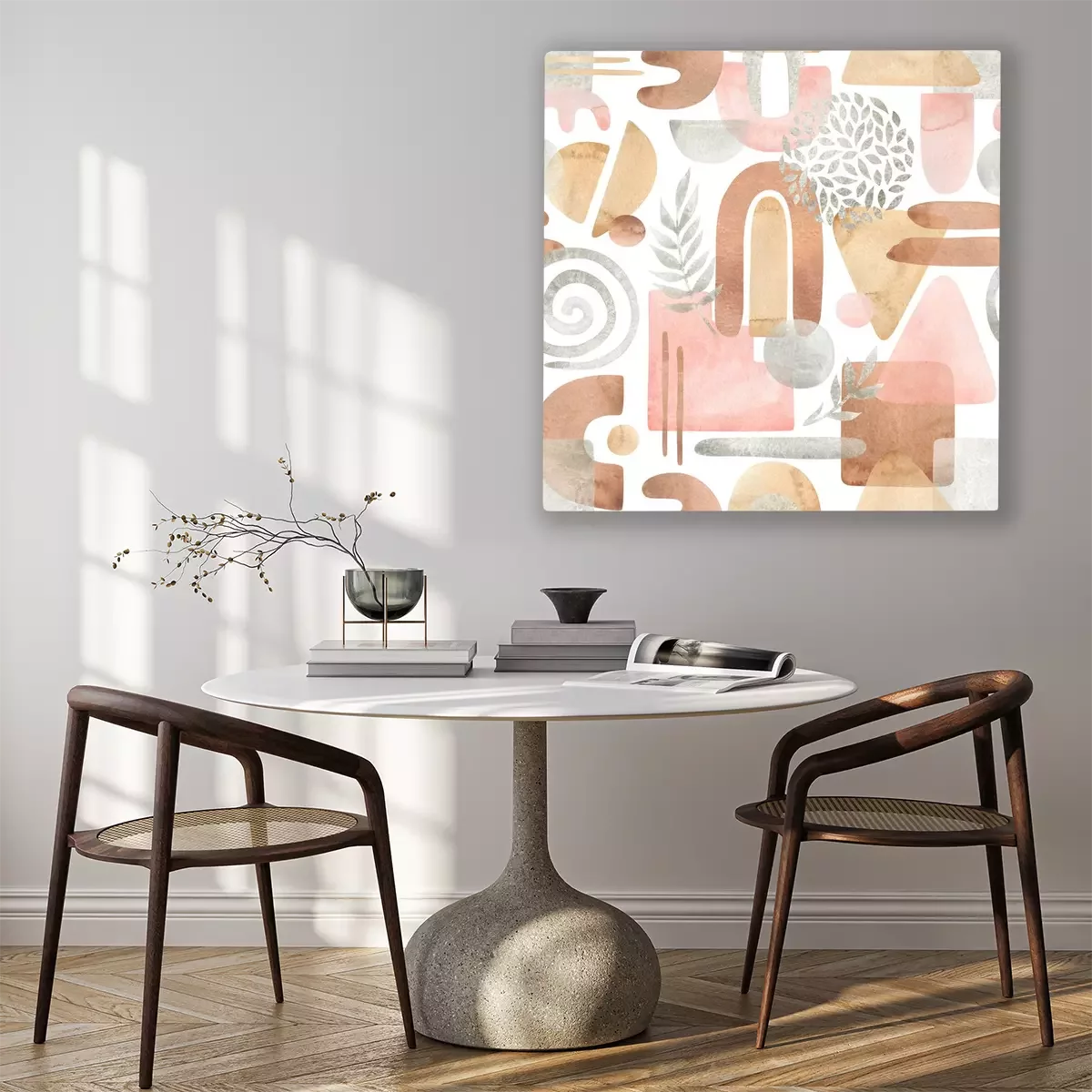 Tableau  Watercolor seamless pattern with abstract shapes in warm pastel colors, pink, ocher, terracotta, silver. Aesthetic modern background with freehand geometric forms. Stile design for textile, wallpaper.
