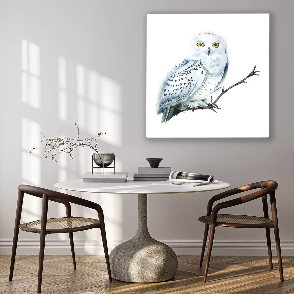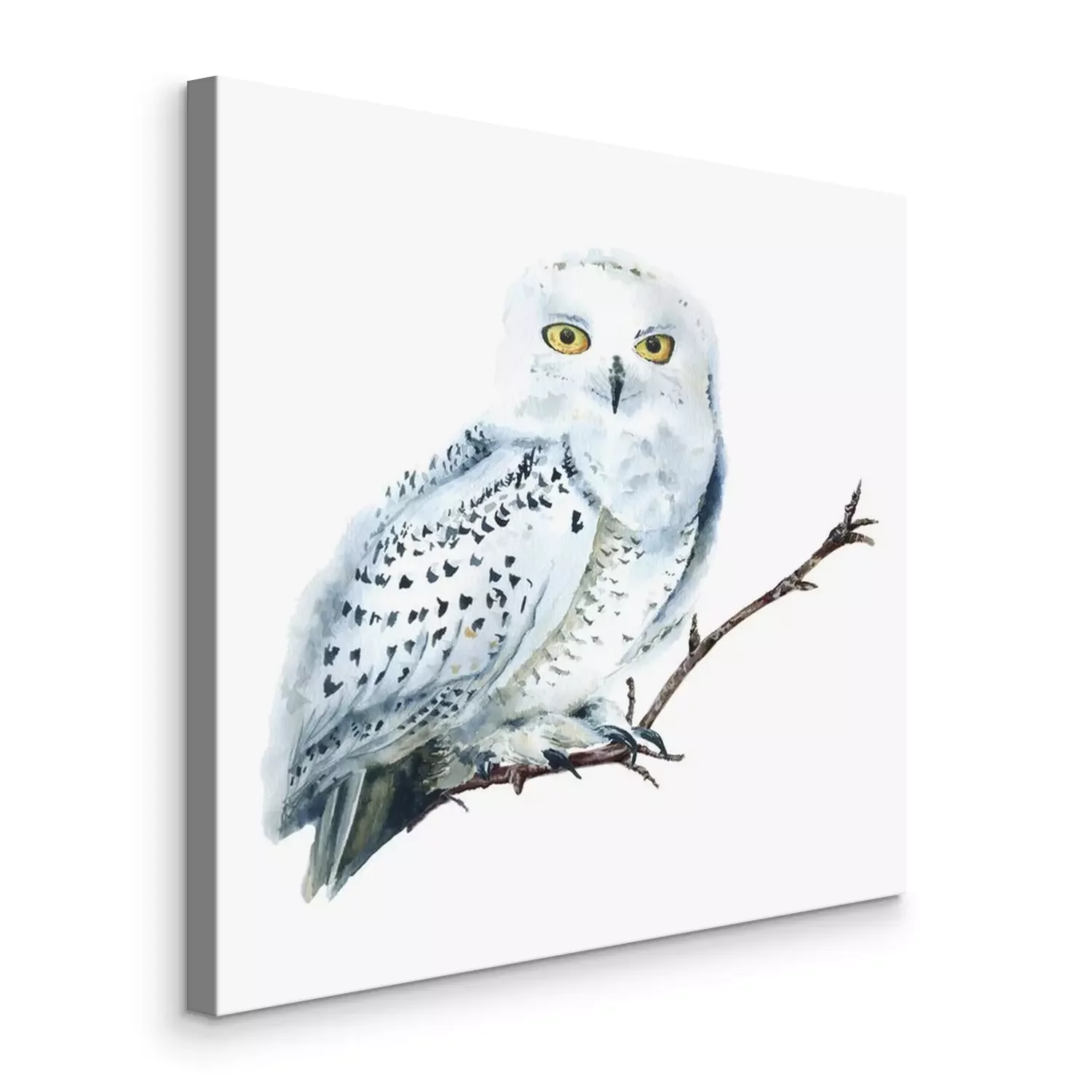 Tableau : Watercolor white polar owl isolated, Arctic bird. North fauna Illustration. Poster, wall-art. Scandinavian style. Winter prints.