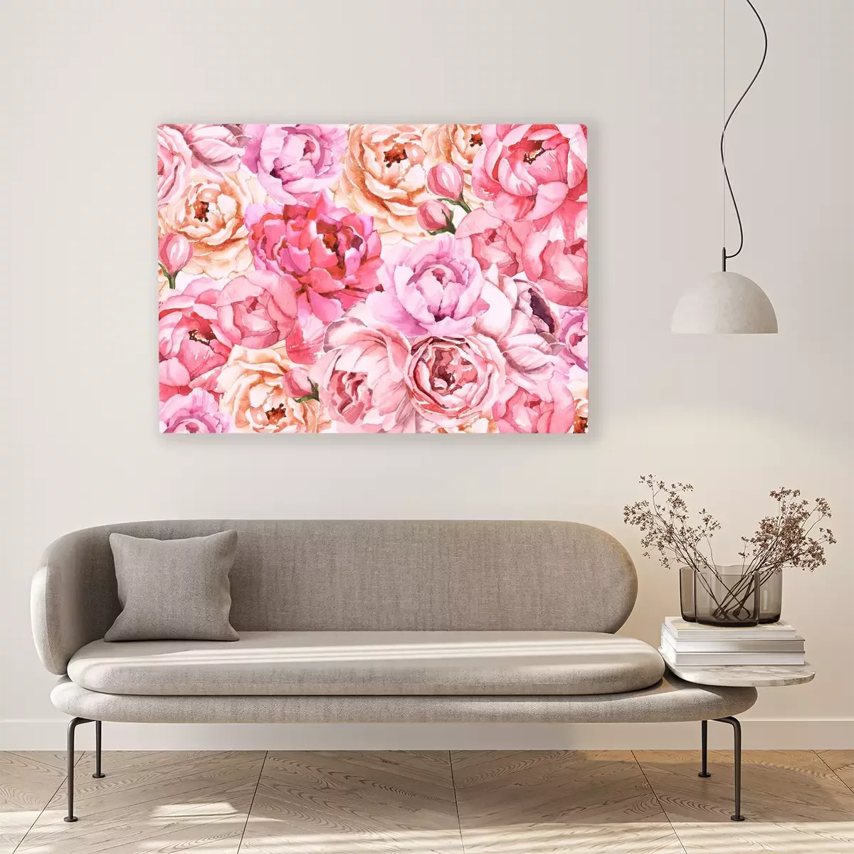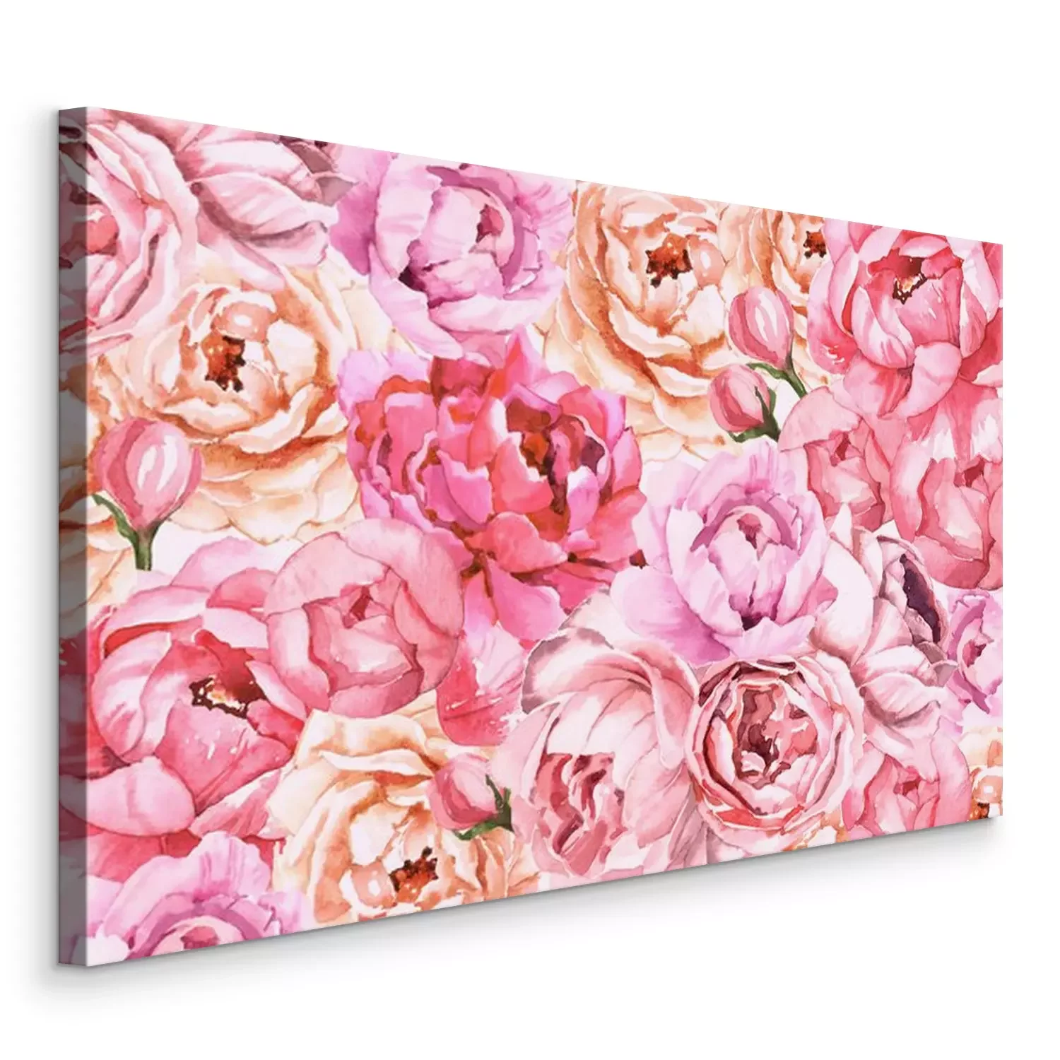 Tableau : Watercolour hand painted botanical gentle macro peony flowers illustration wallpaper background