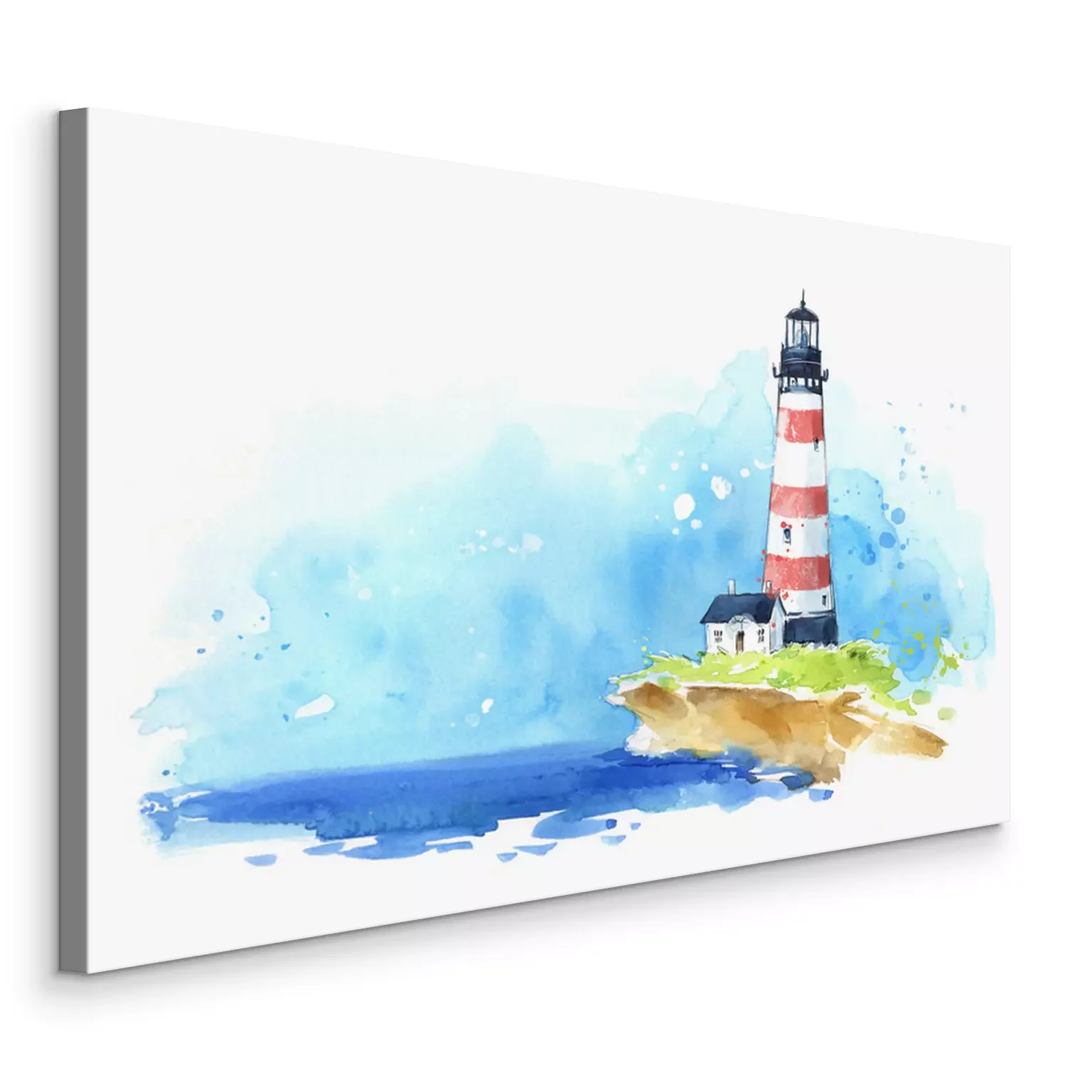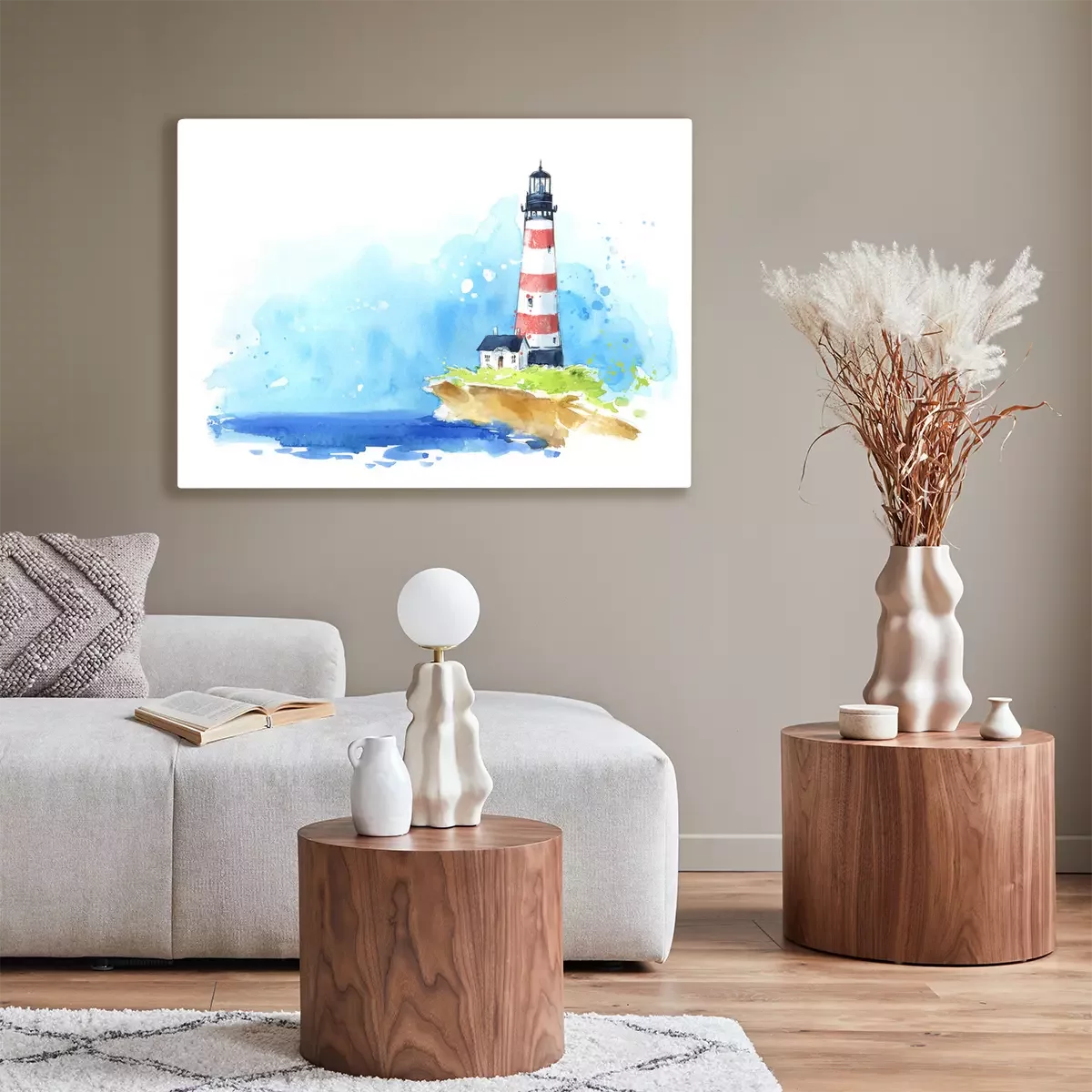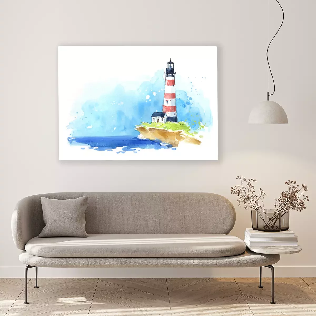 Tableau : Watercolour sketch of a lighthouse at the seaside, seascape