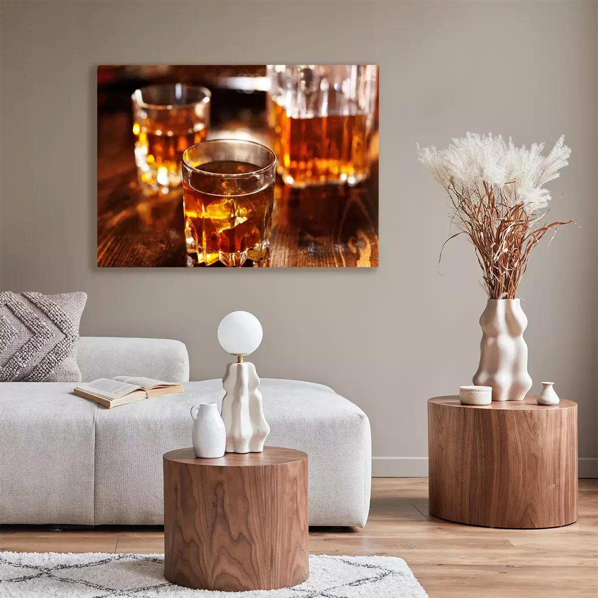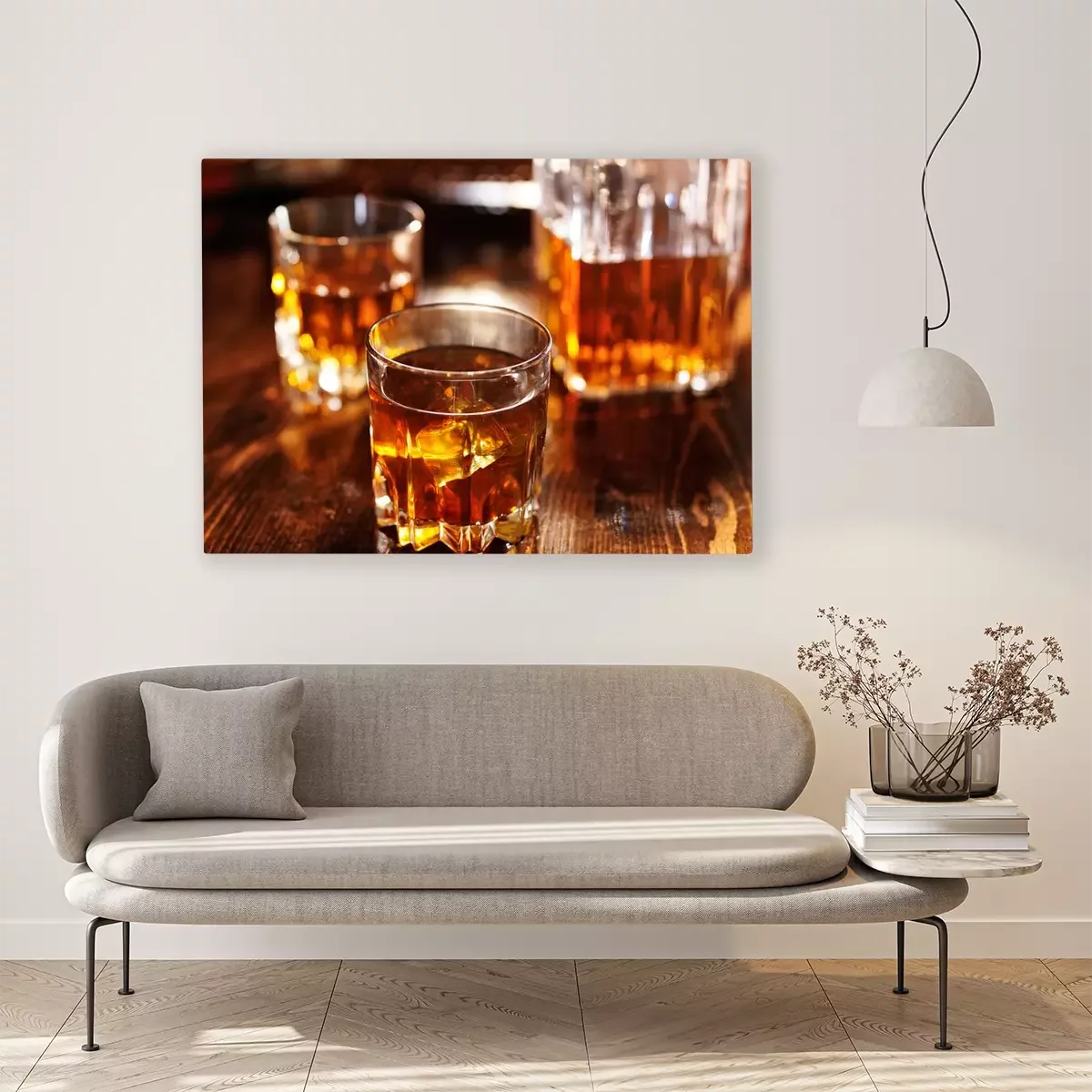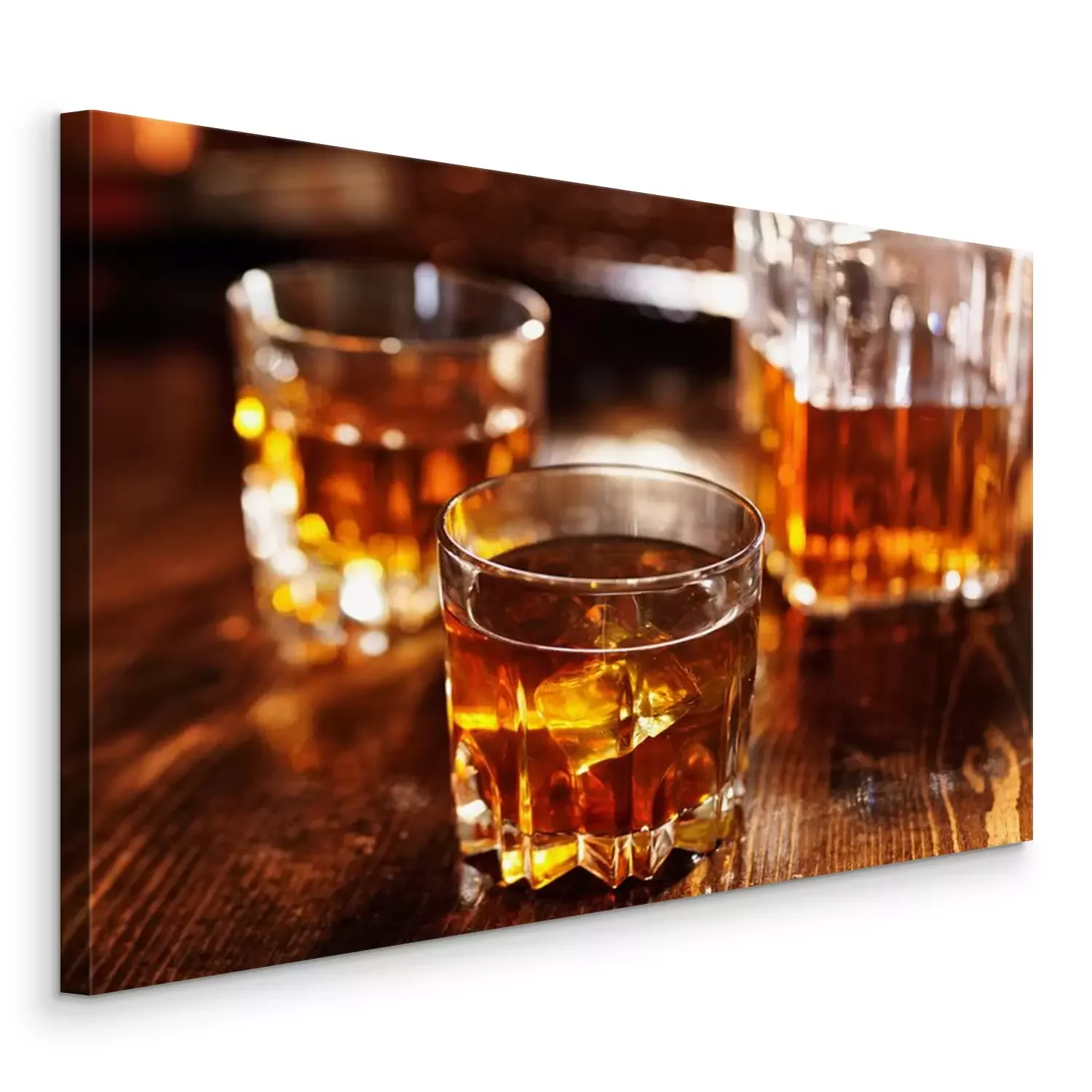 Tableau : whisky dans le verre avec décanteur en arrière-plan
