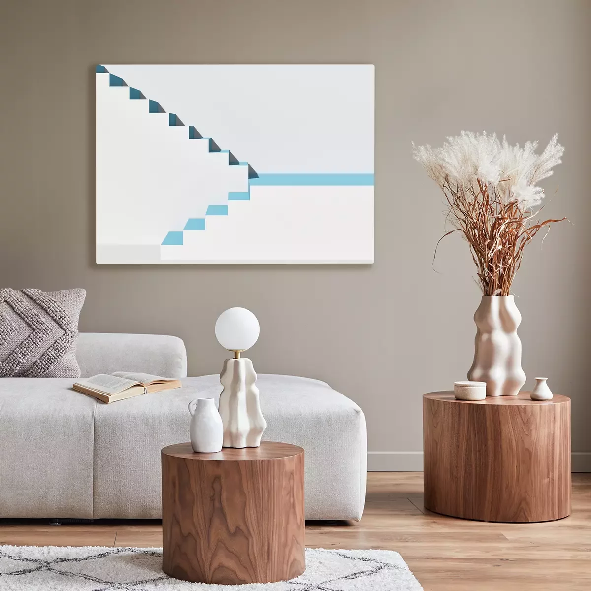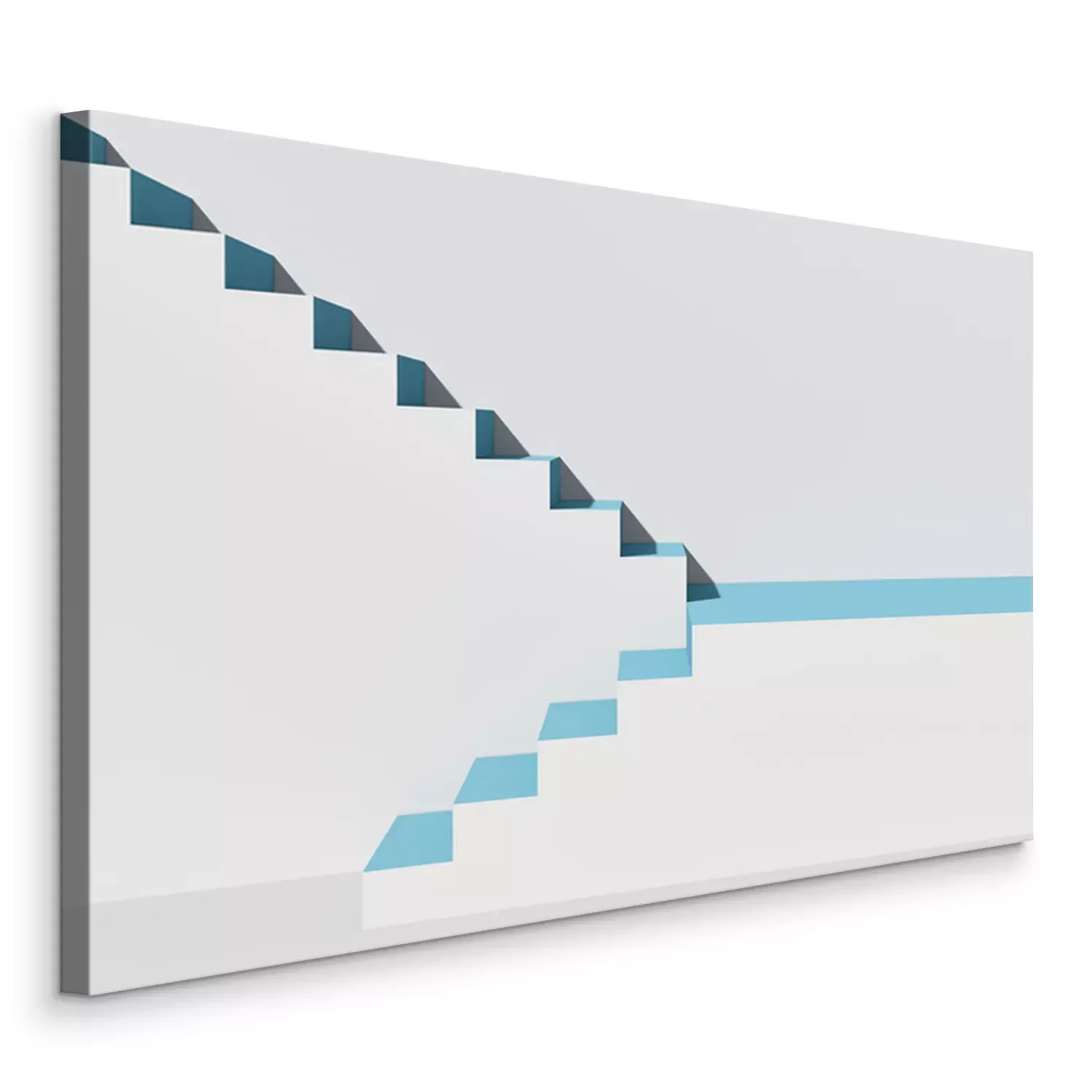 Tableau  White and blue stairs on white background; abstract steps 3d rendering, 3d illustration