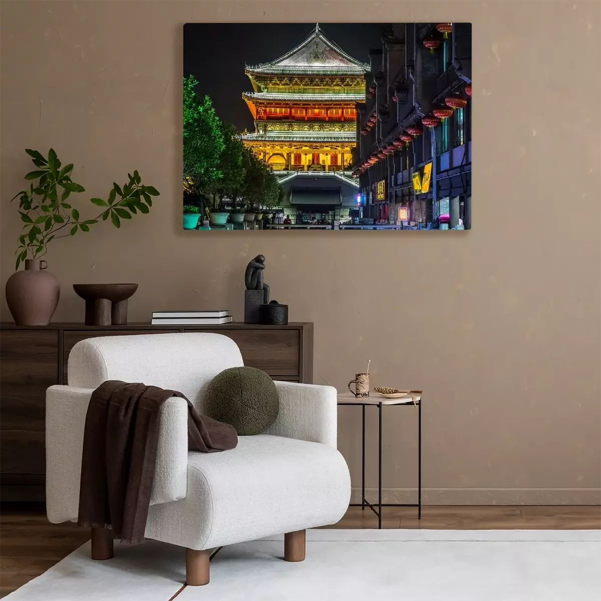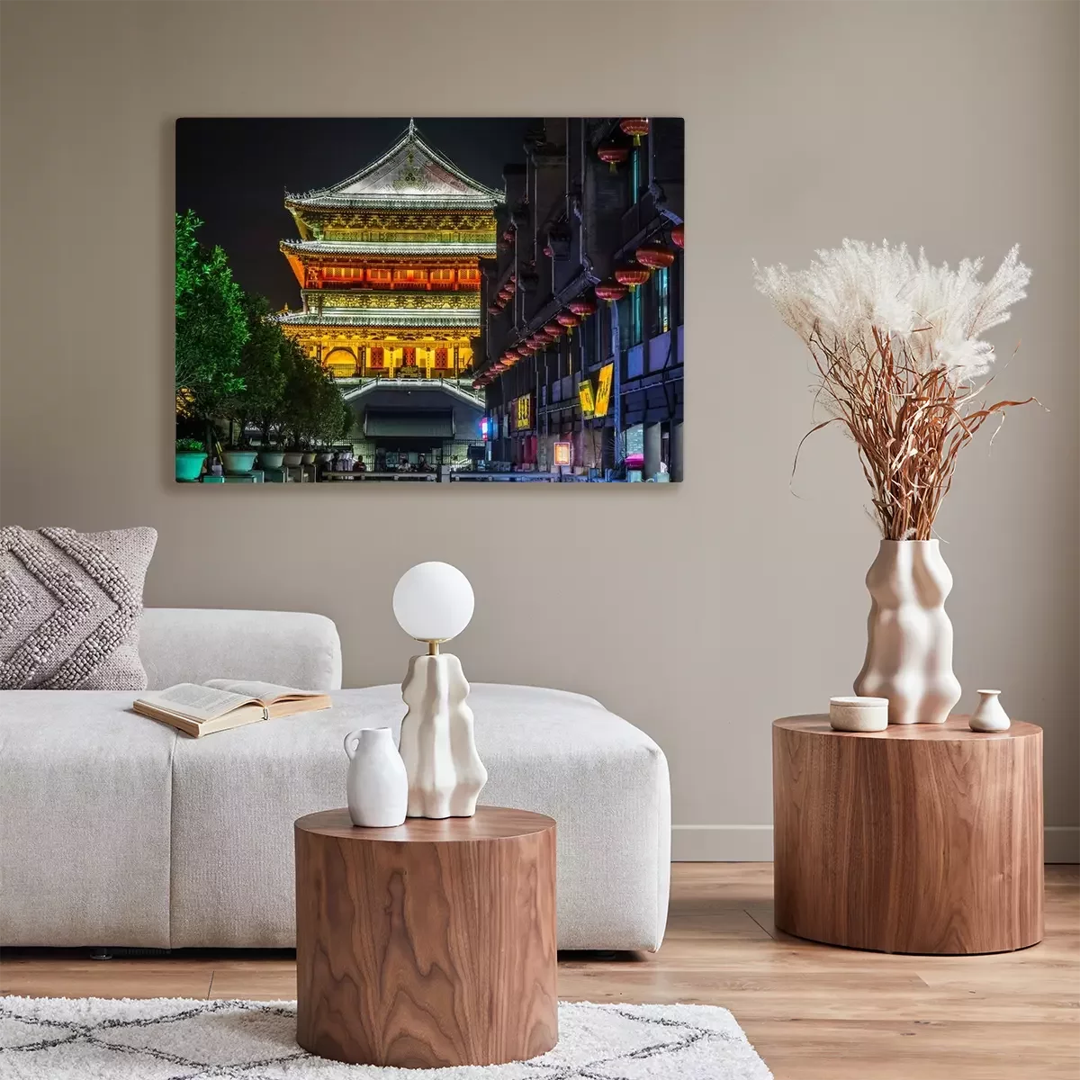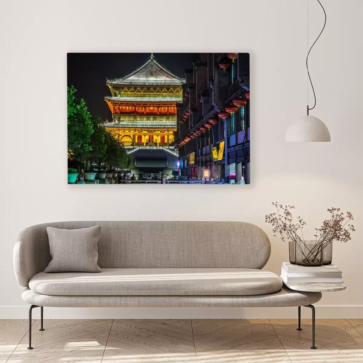 Tableau  Wide angle shot of the Defachang in Lianhu, China at night