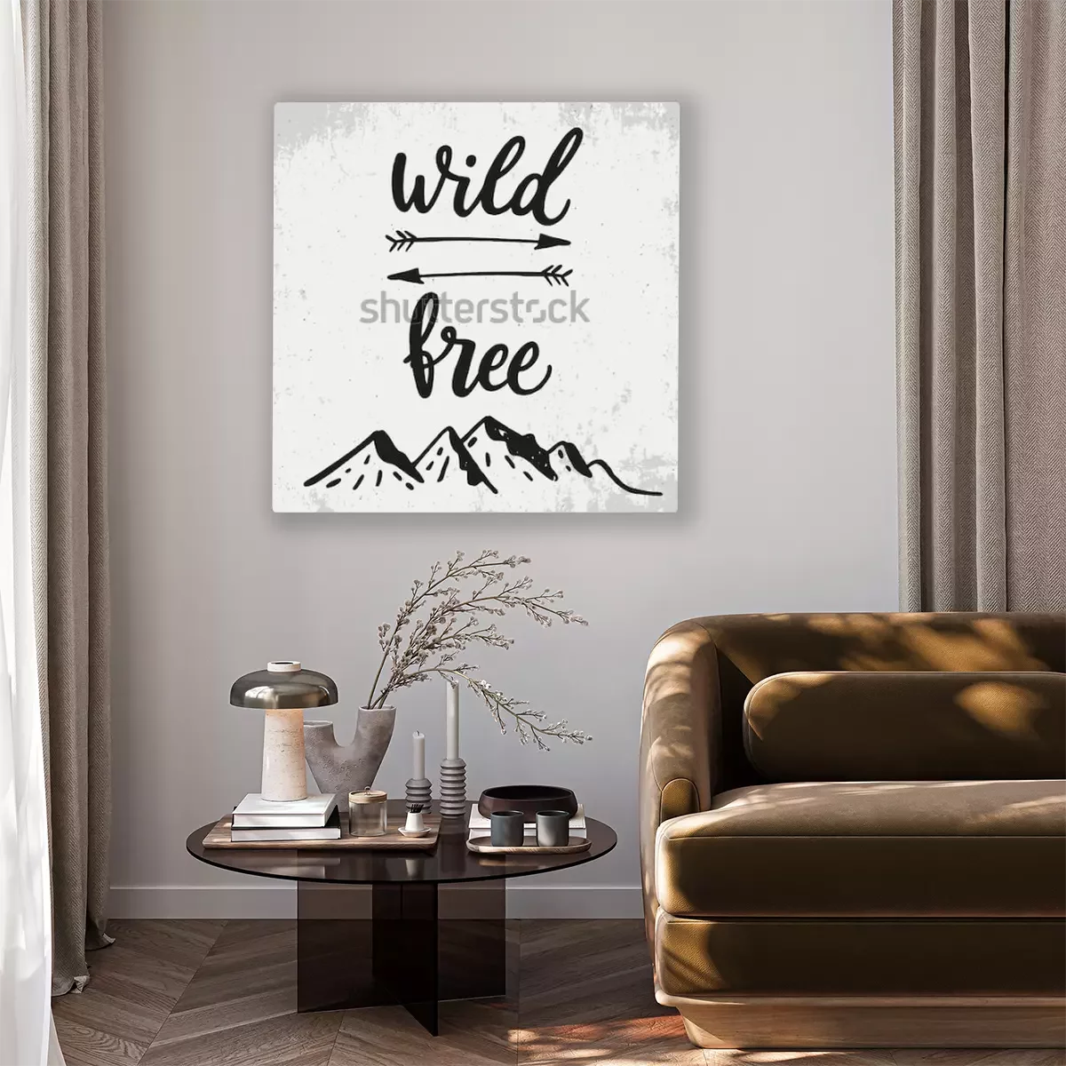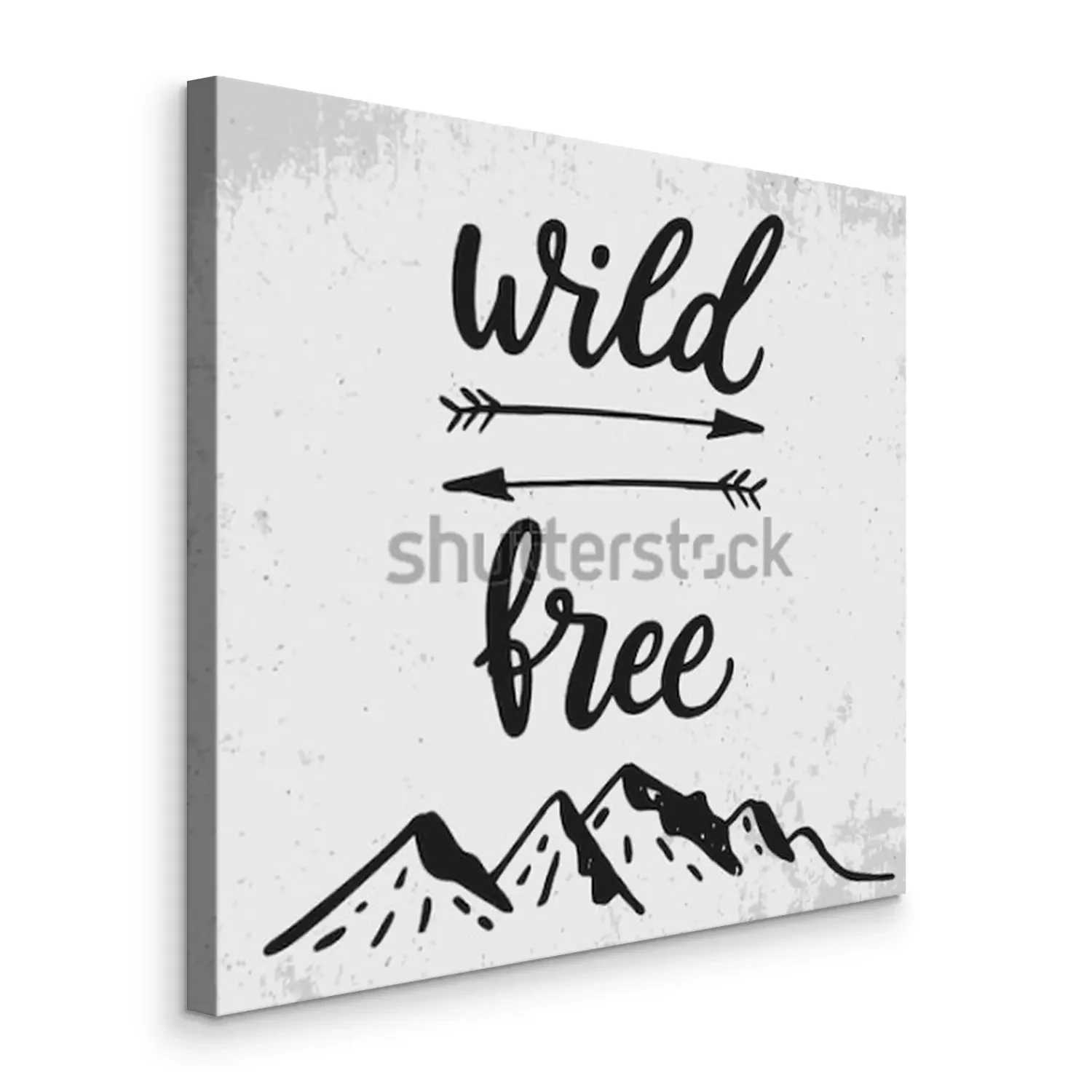 Tableau  Wild and free. Life style inspiration quotes lettering. Motivational quote typography with mountains and arrows ink illustrations. Calligraphy graphic design sign element. Vector hand written style.
