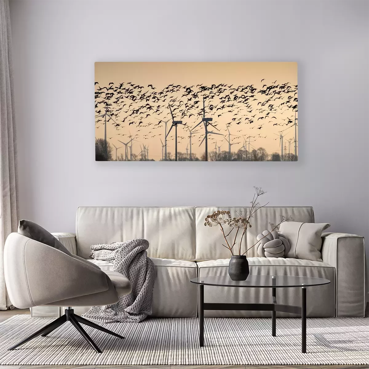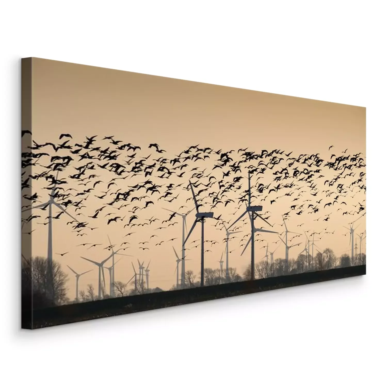 Tableau  Wildgänse vor einem Windpark, oiseaux migrateurs, Ostfriesland, 18012.jpg