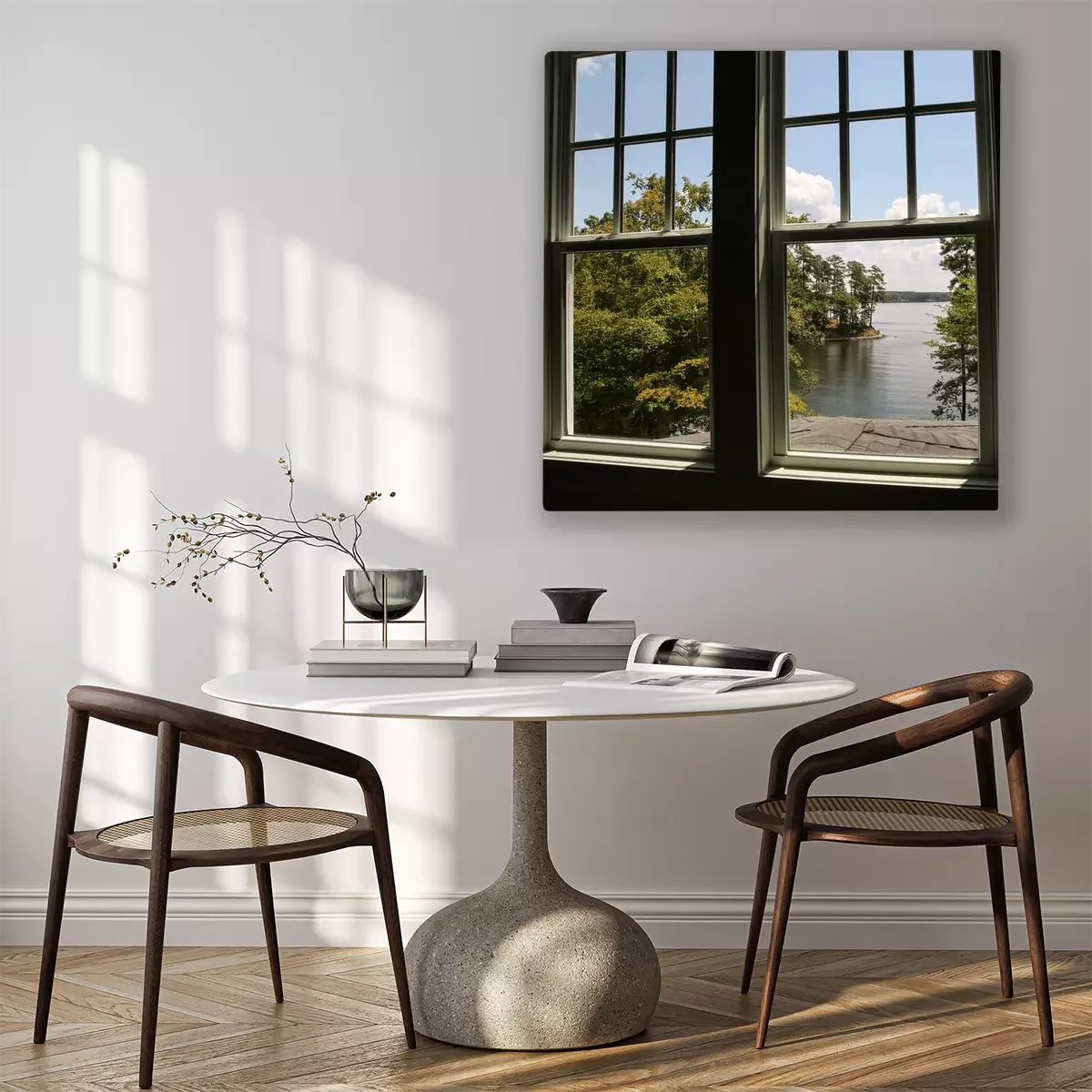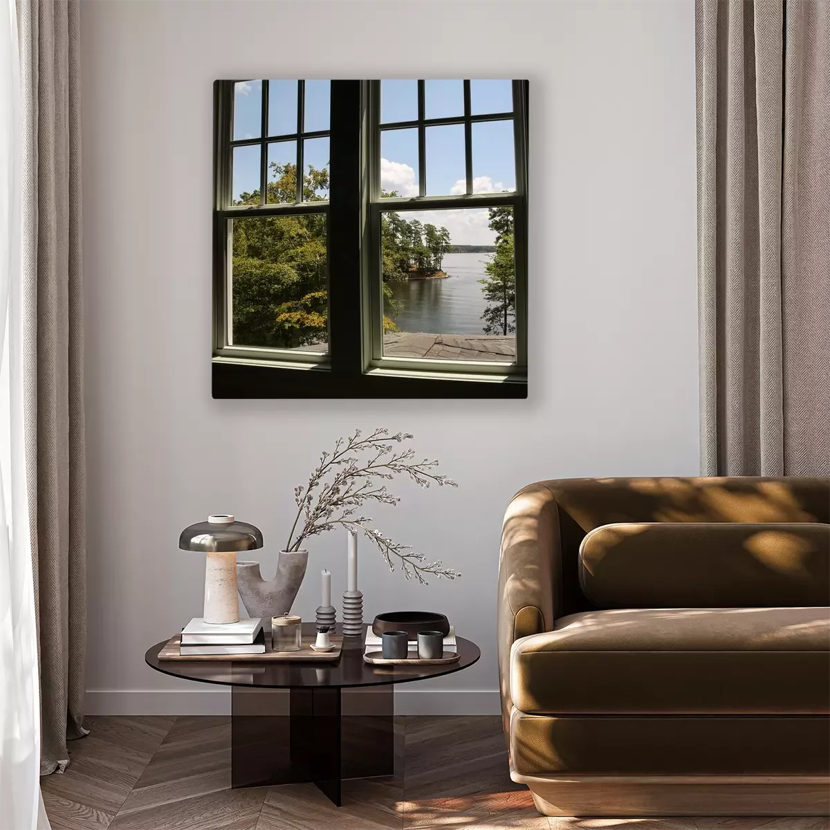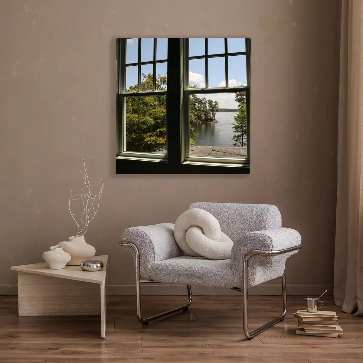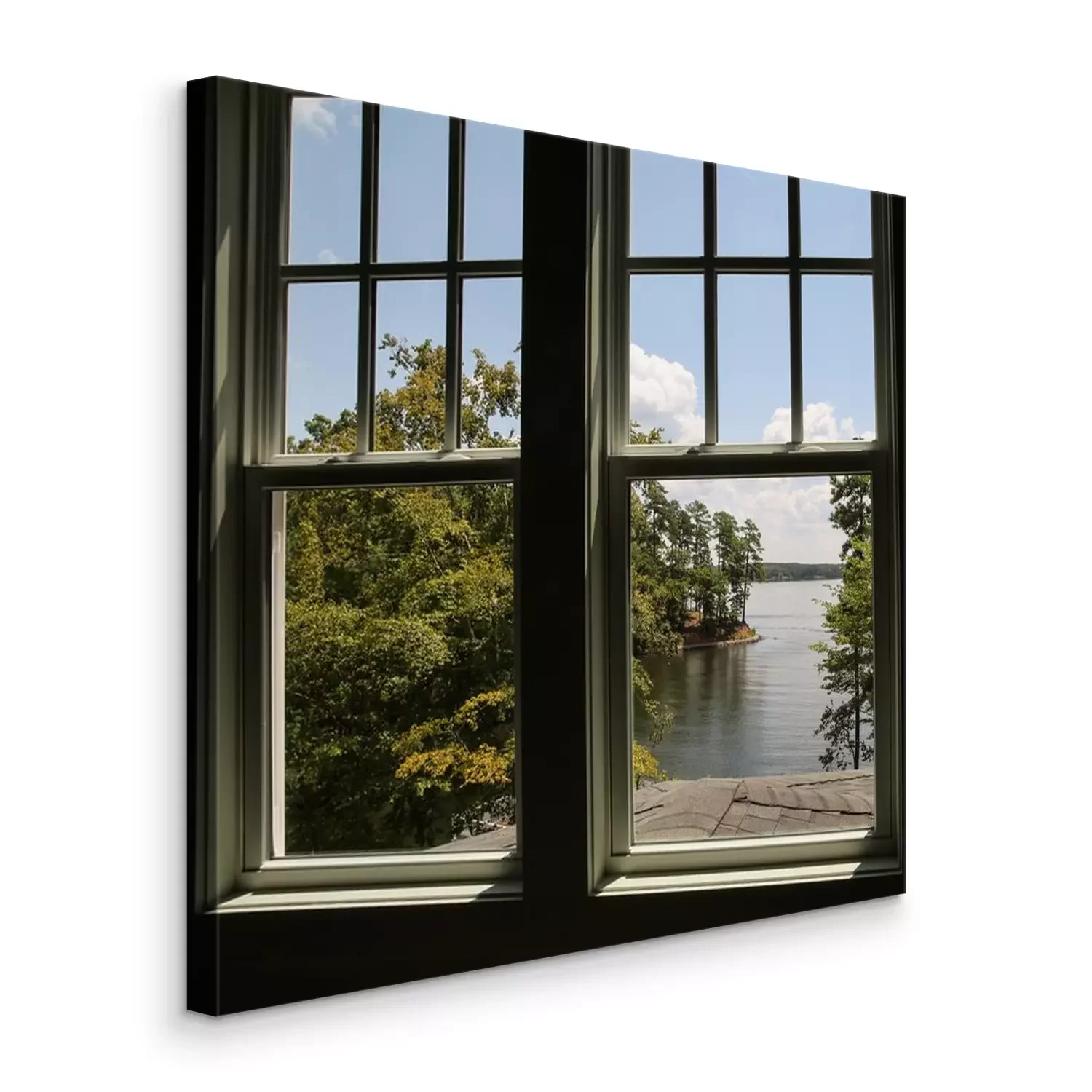 Tableau  Window with view of a lake in the distance