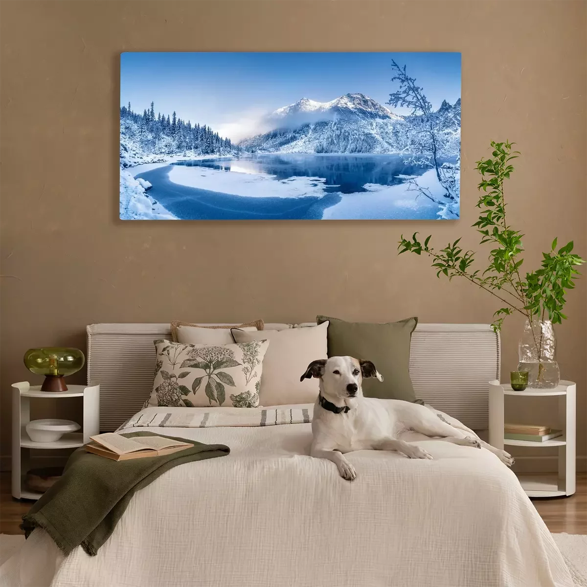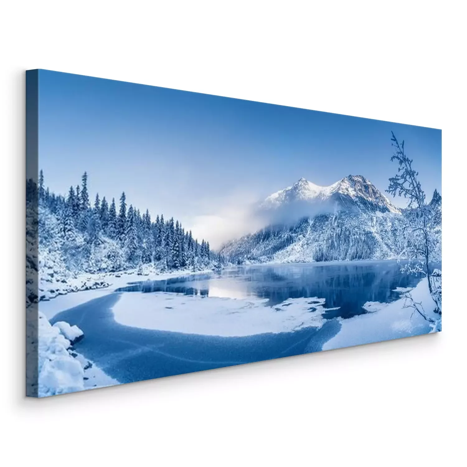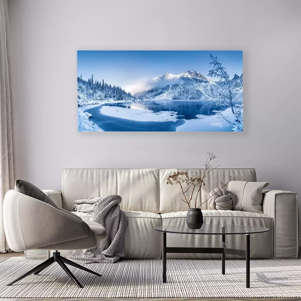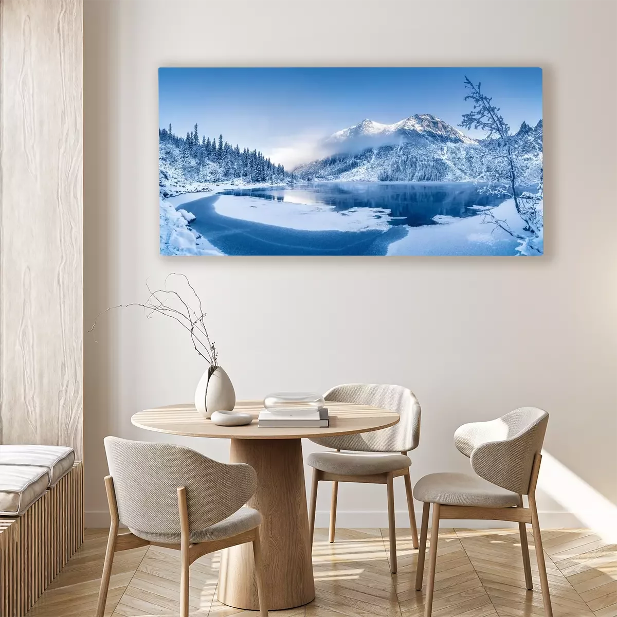 Tableau  Winter panoramic landscape with scenic frozen mountain lake