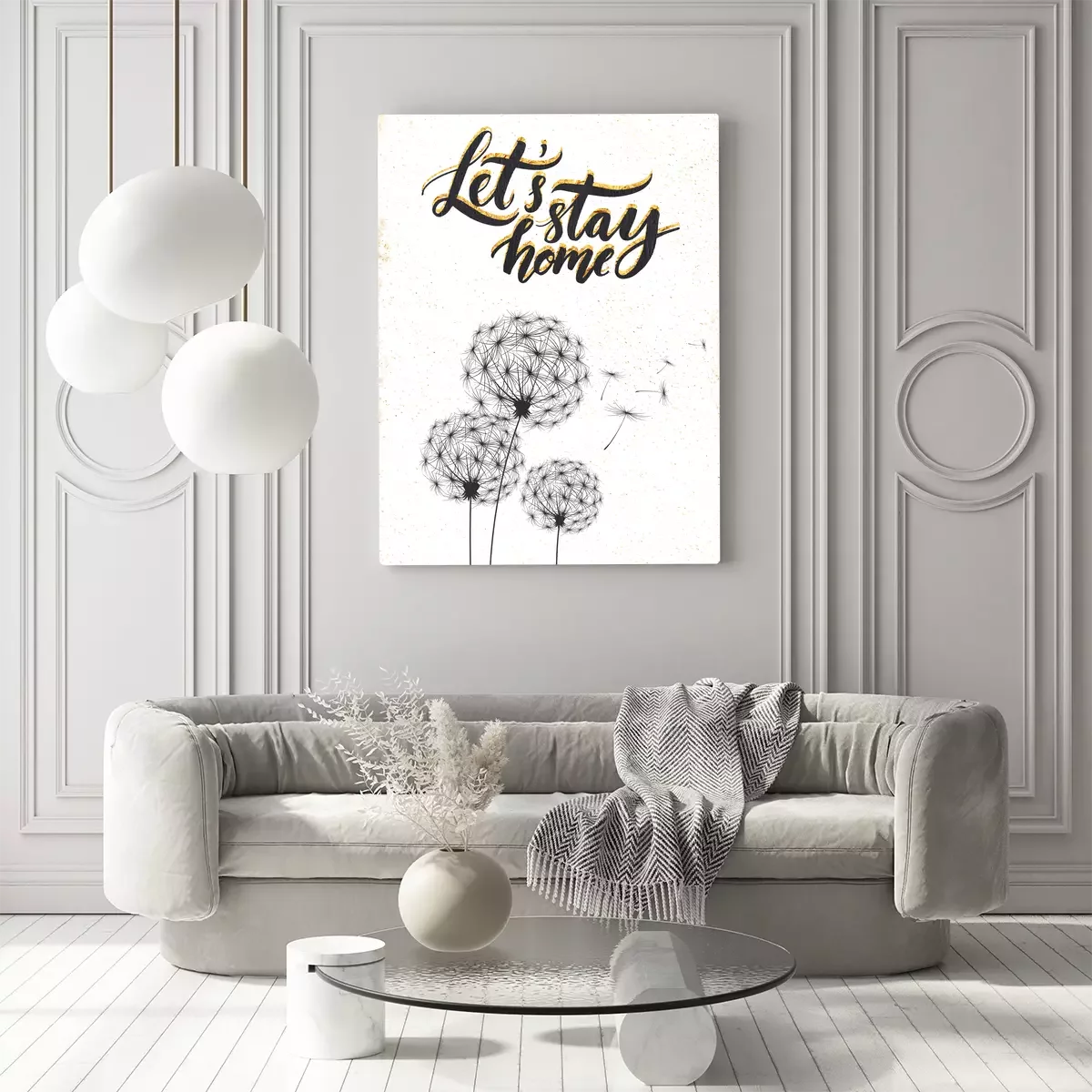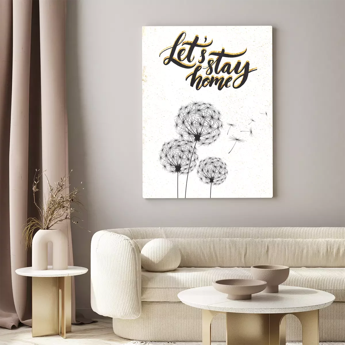 Des pissenlits dessinés avec le message « restons à la maison »