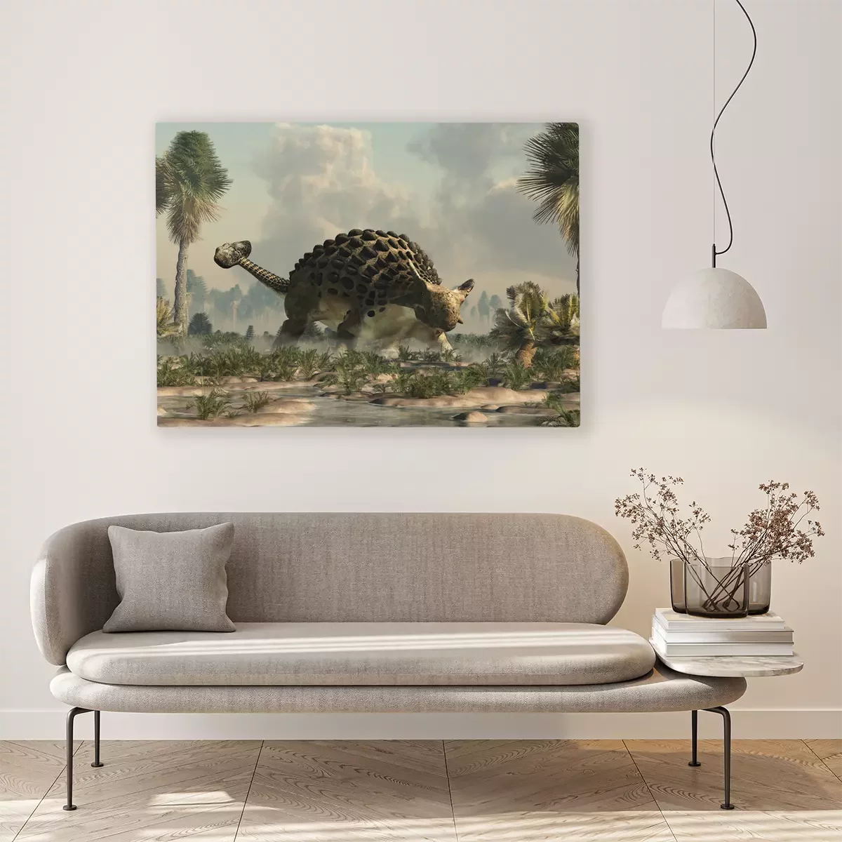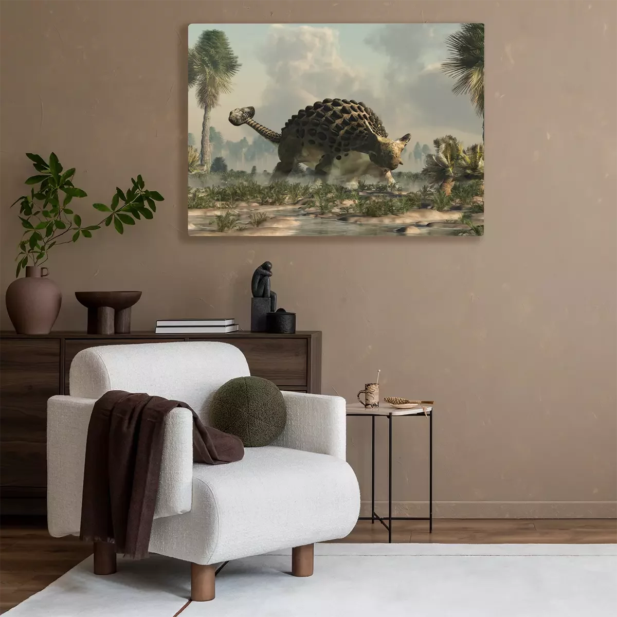 Tableau  Dinosaure herbivore « blindé » dans une plaine