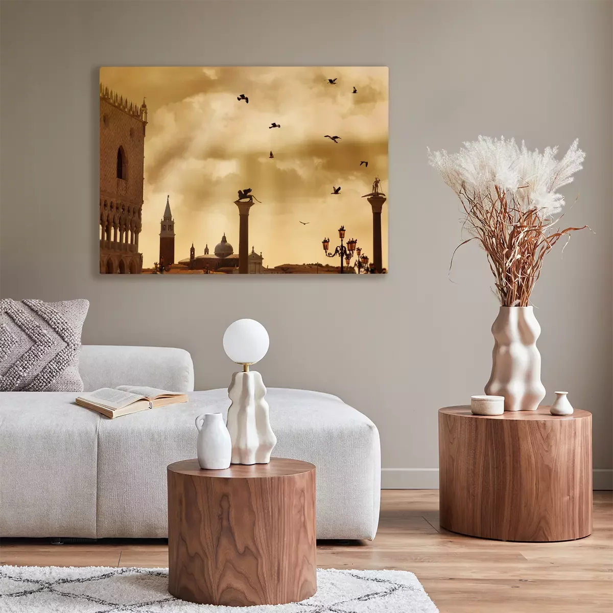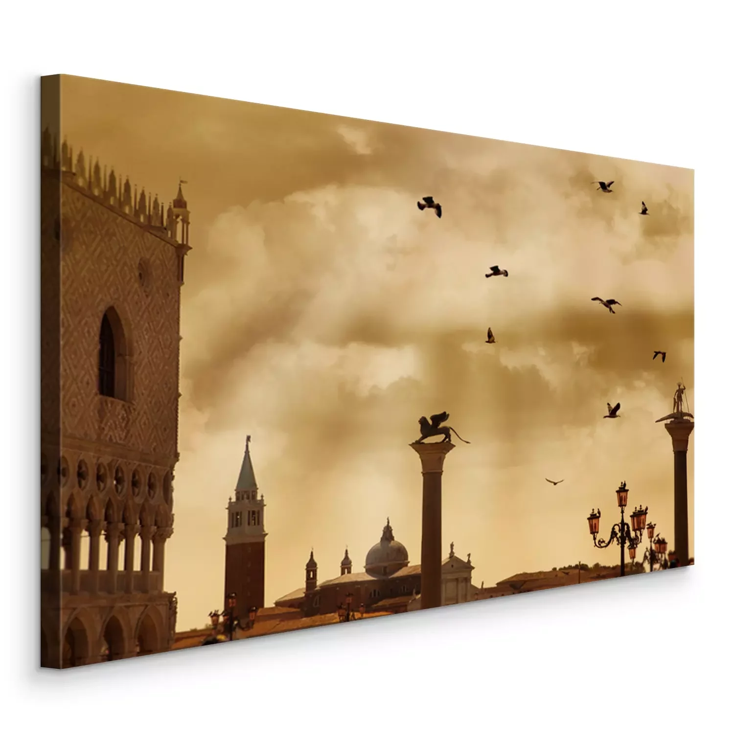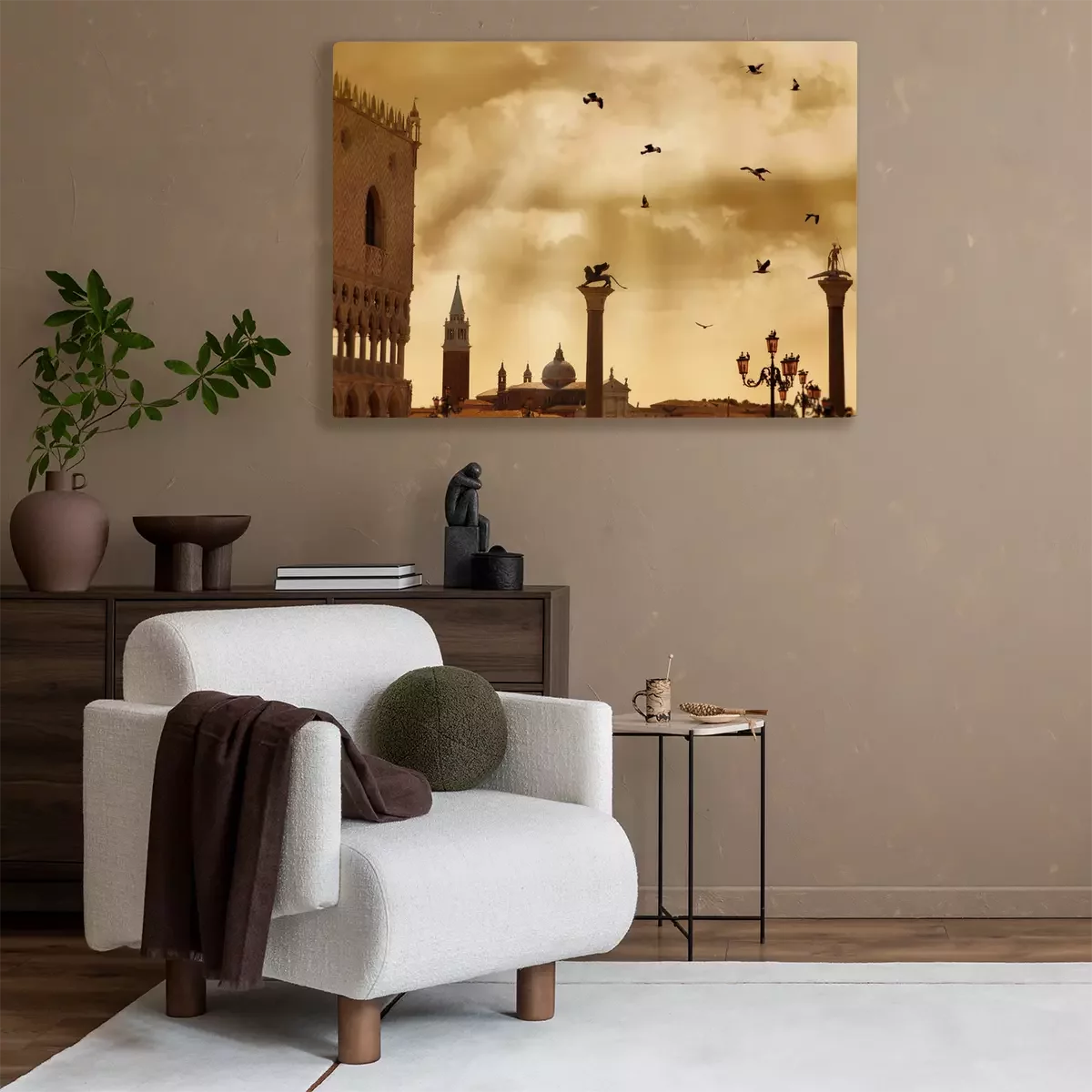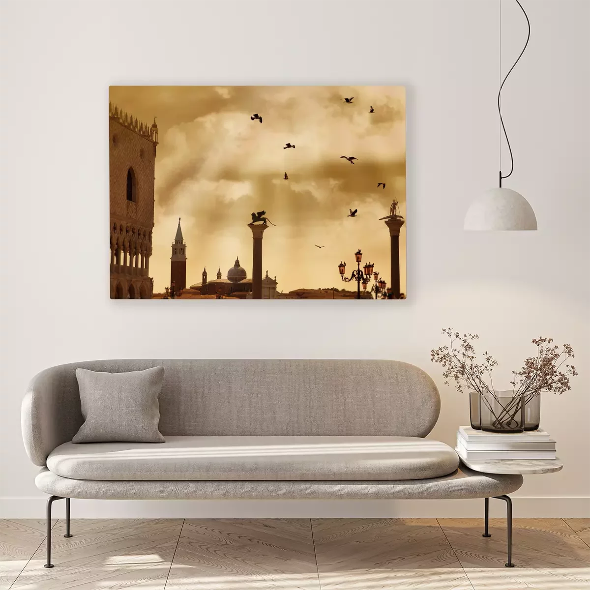 Tableau  La place San Marco avec ses nuages ​​et des oiseaux à Venise, Italie