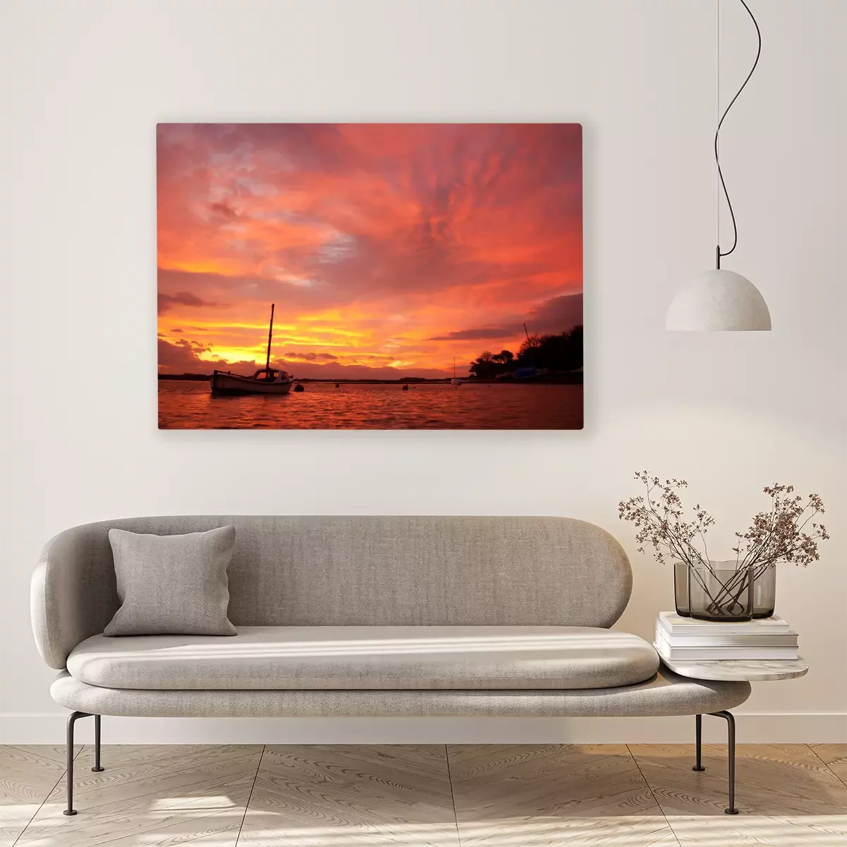 Tableau : Nuages ​​rouges au-dessus de l'eau