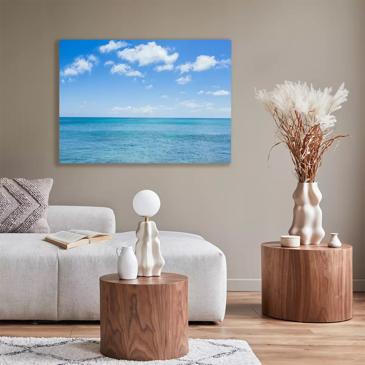 Tableau  Paysage marin avec des nuages ​​et fond de ciel bleu