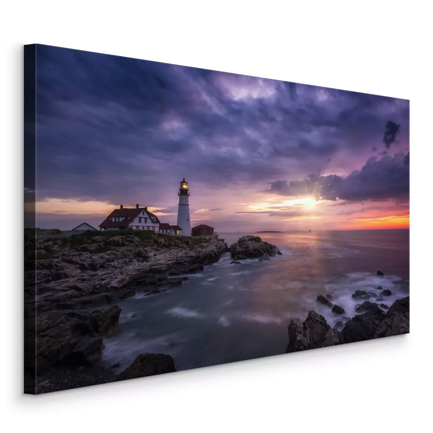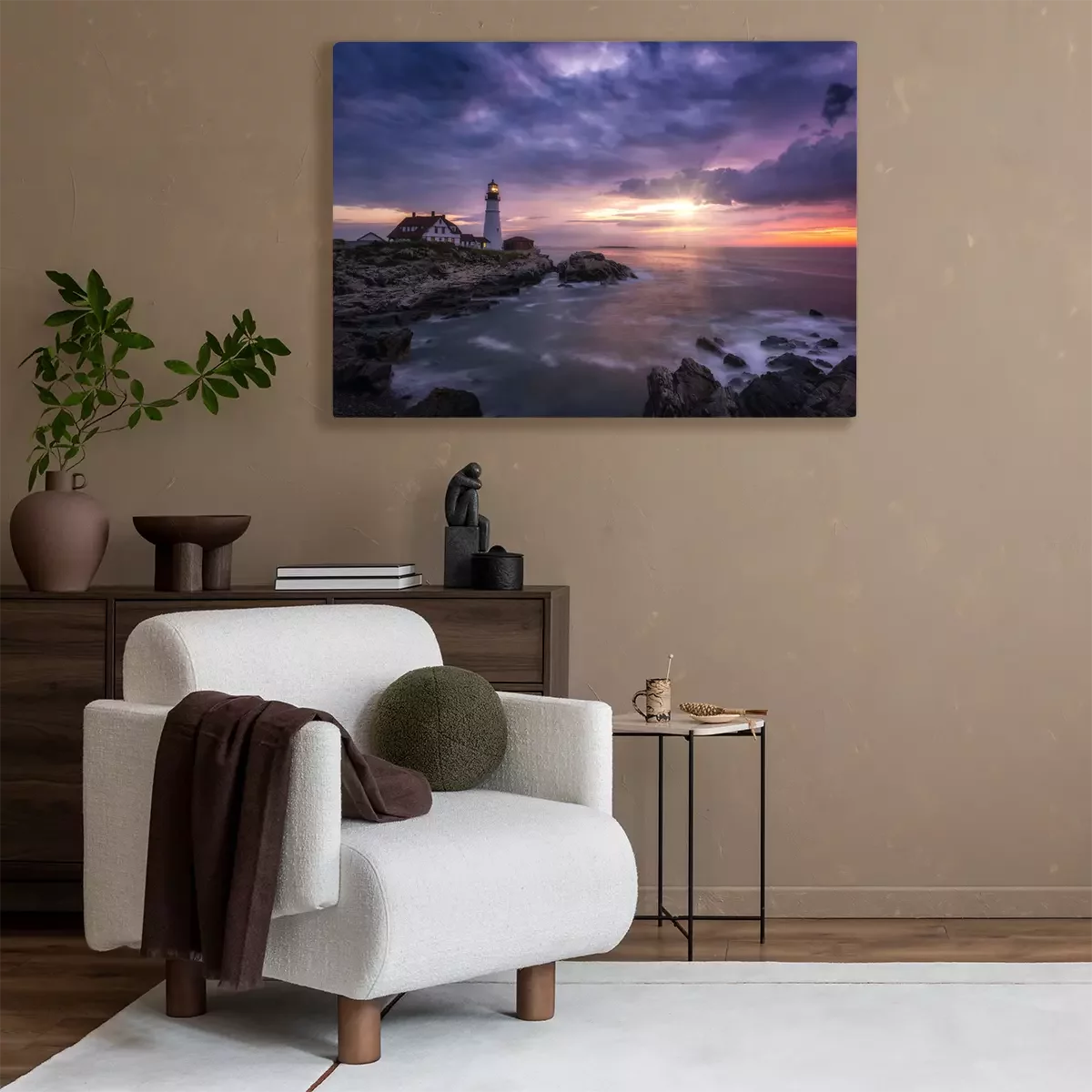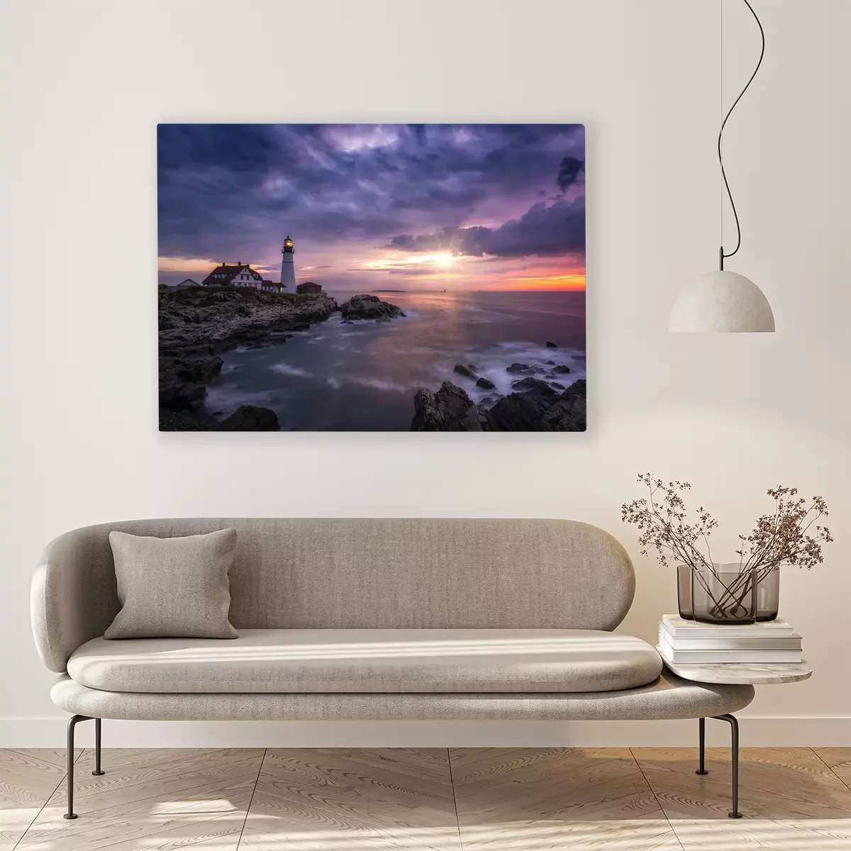 Tableau  Soleil briser les nuages ​​sombres au phare de Portland Head dans le Maine