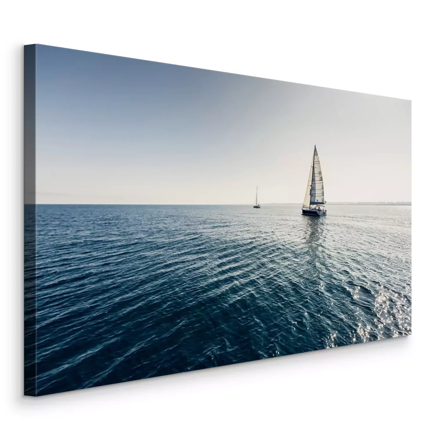 Tableau : Yachts à voile de bateau avec des voiles blanches