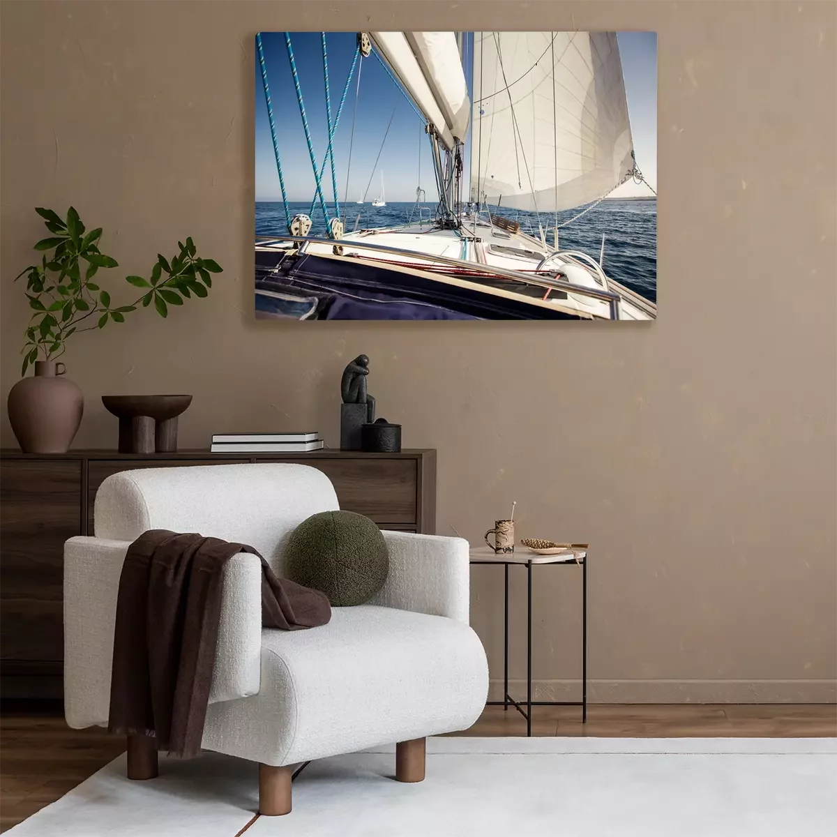 Tableau : Yachts à voile de bateau avec des voiles blanches