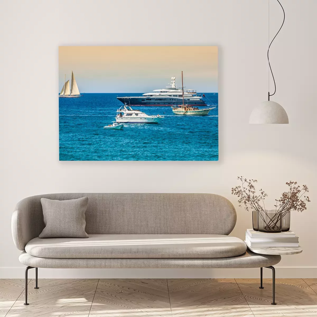 Tableau  Yachts de luxe dans la plage turquoise de Formentera Illetes