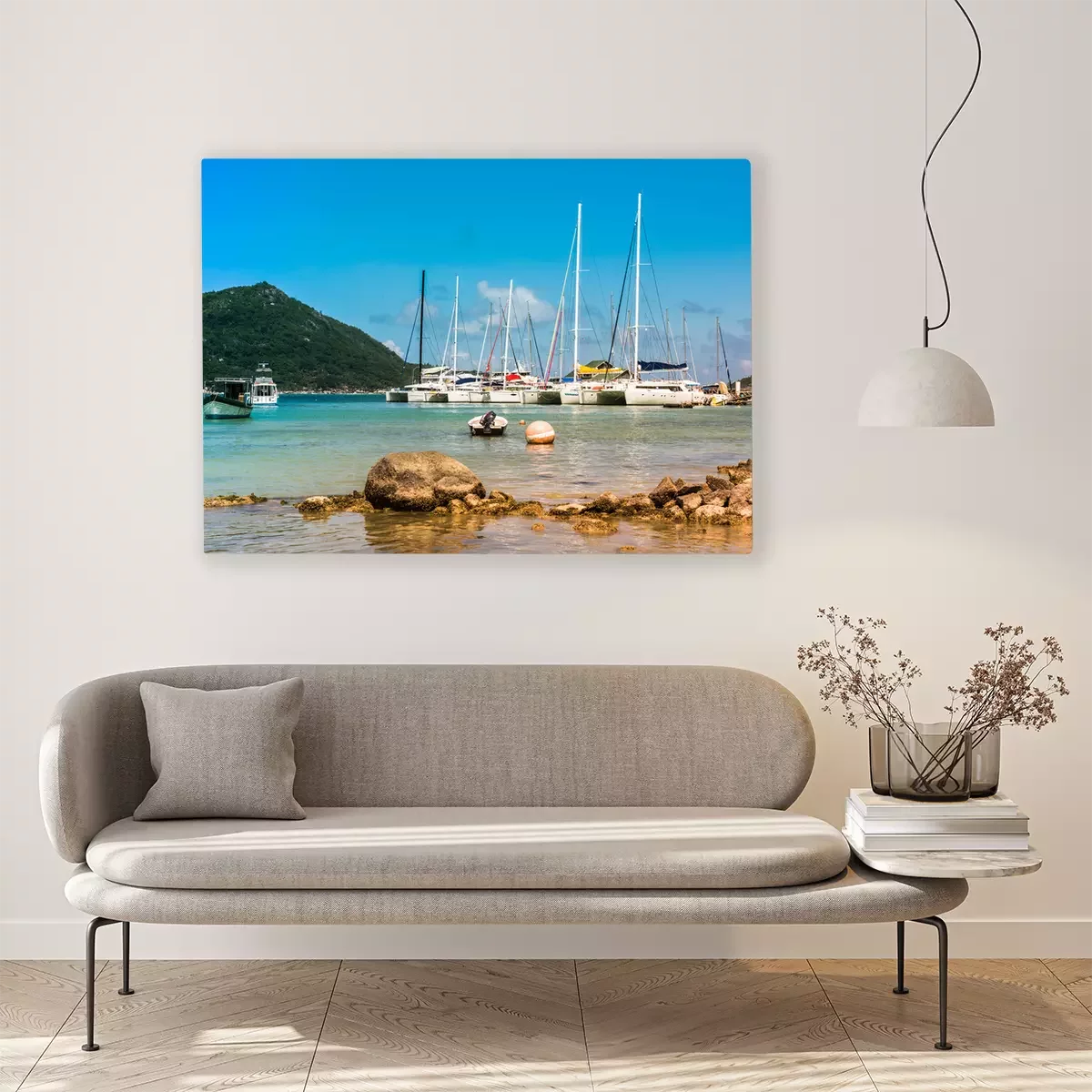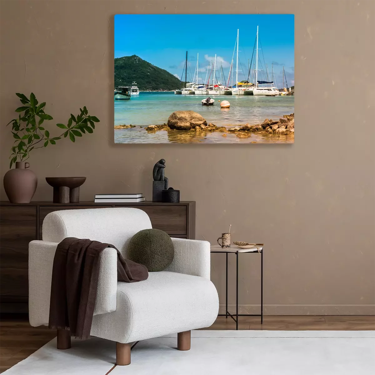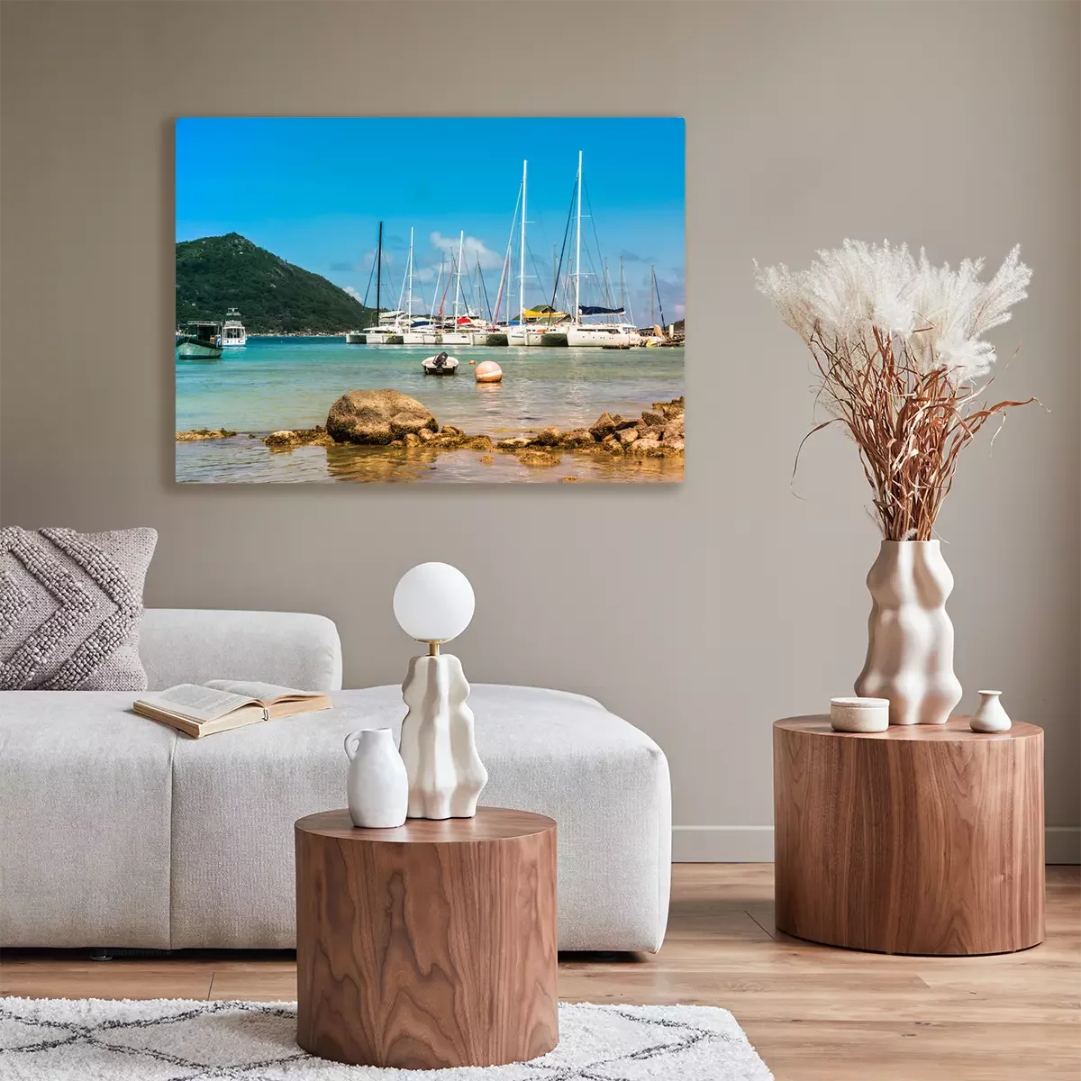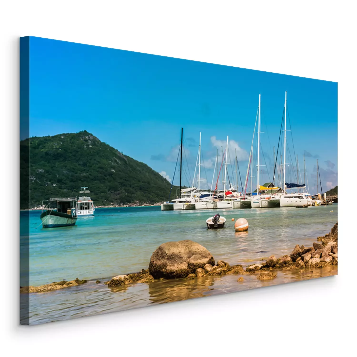 Tableau  Yachts Marina à Praslin île des Seychelles