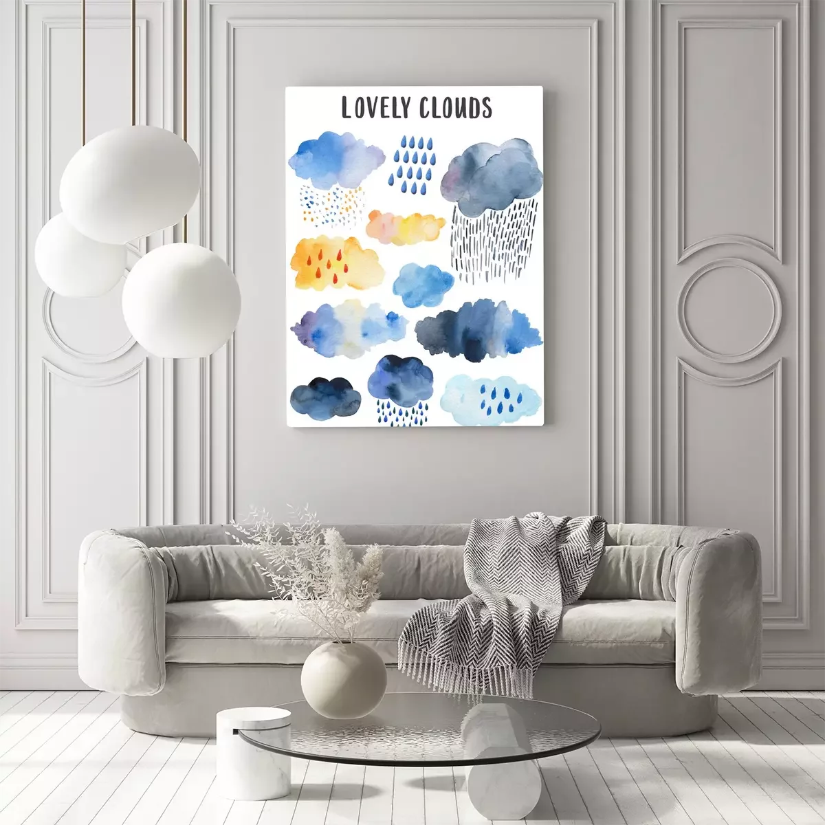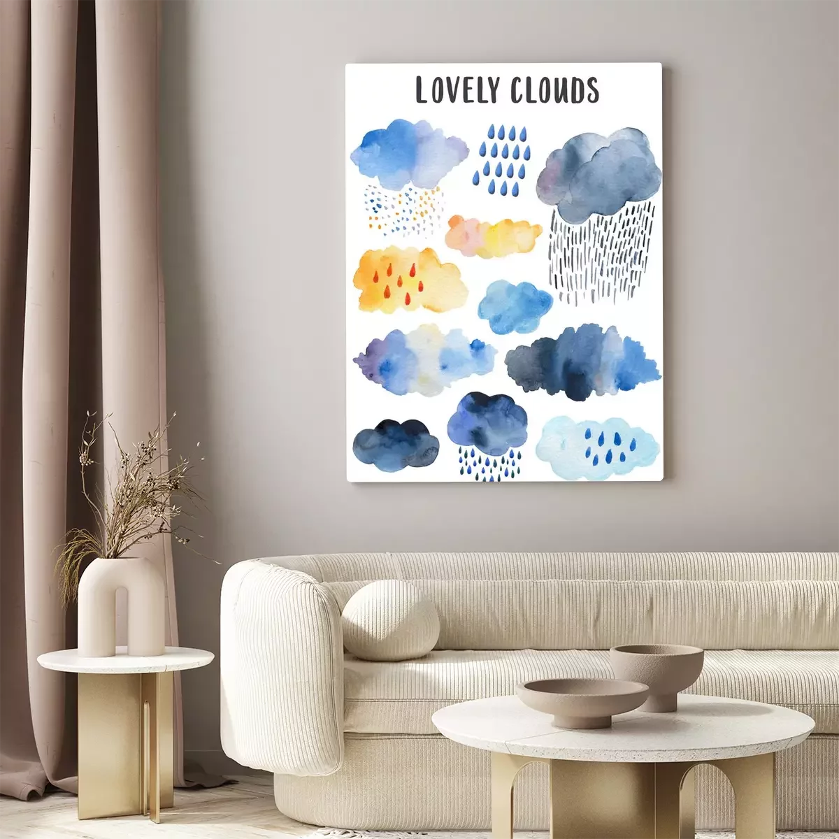Tableau : Yellow rainy cloud. Scandinavian poster for children's room decor