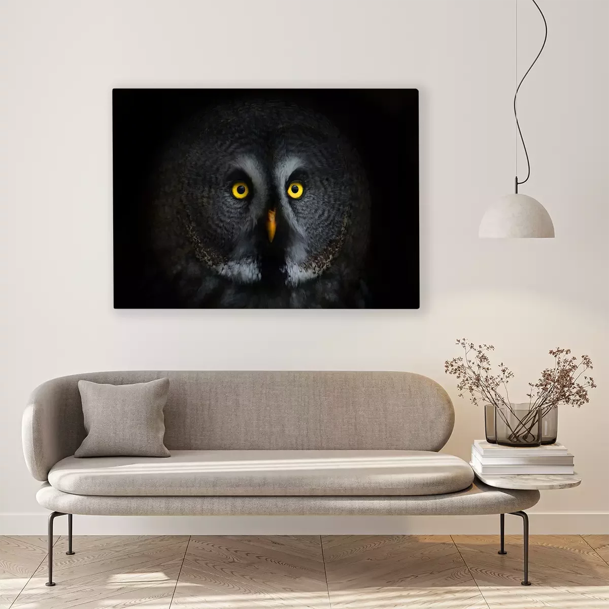 Tableau : Yeux de hibou dans le noir