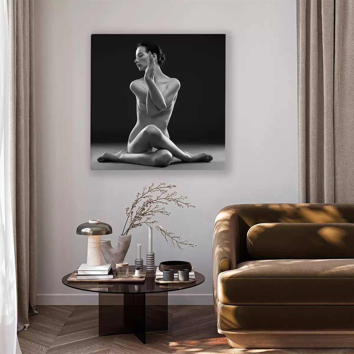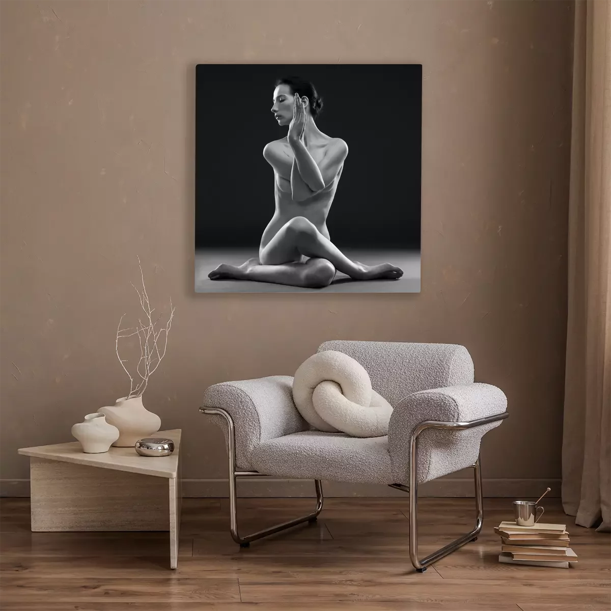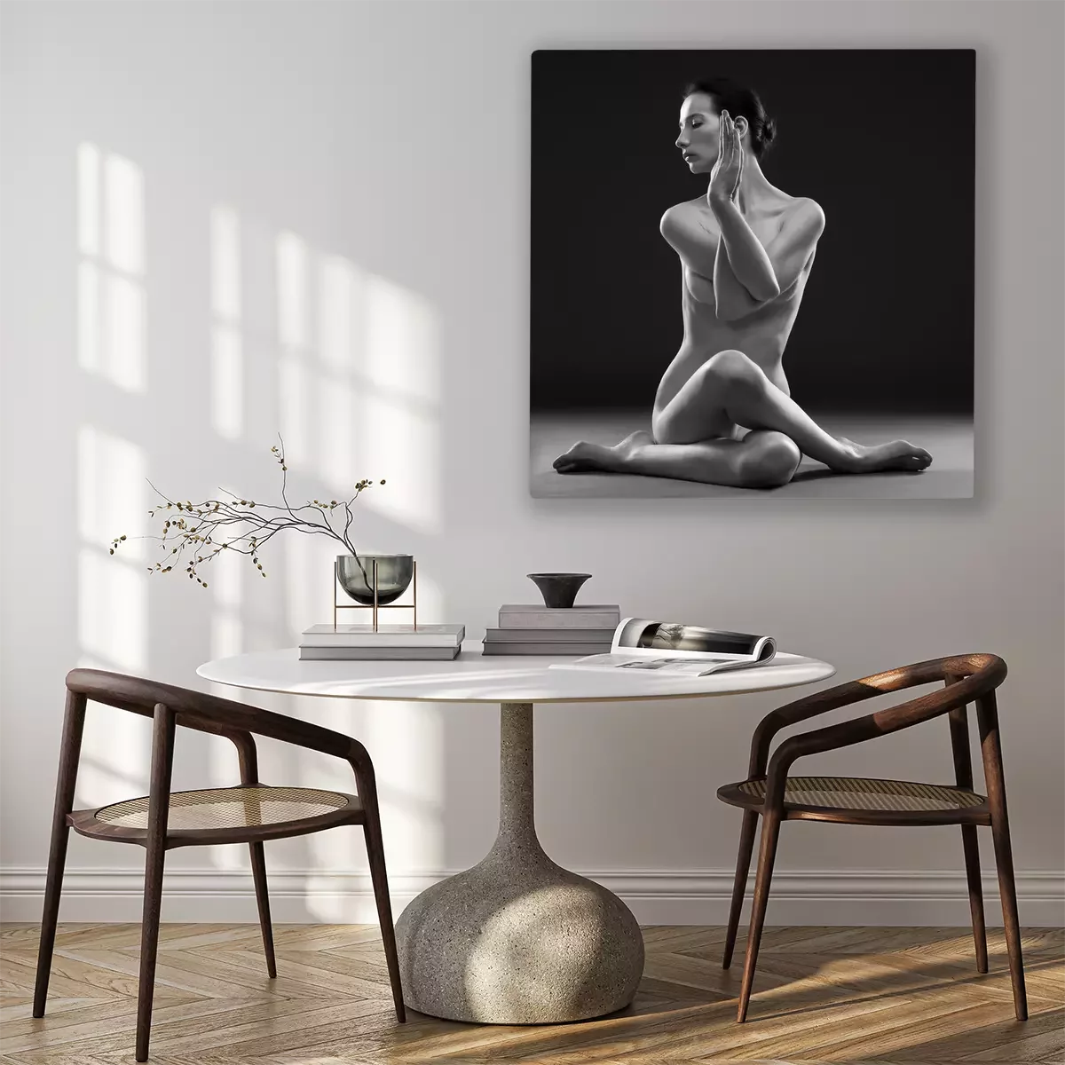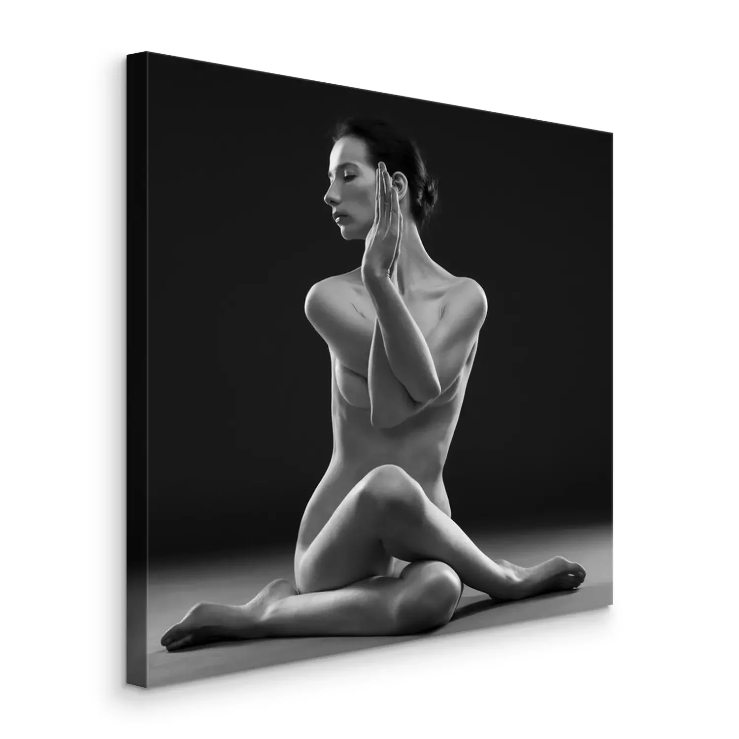 Tableau  Yoga nu. Beau, sexy, corps, jeune, femme, gris, fond