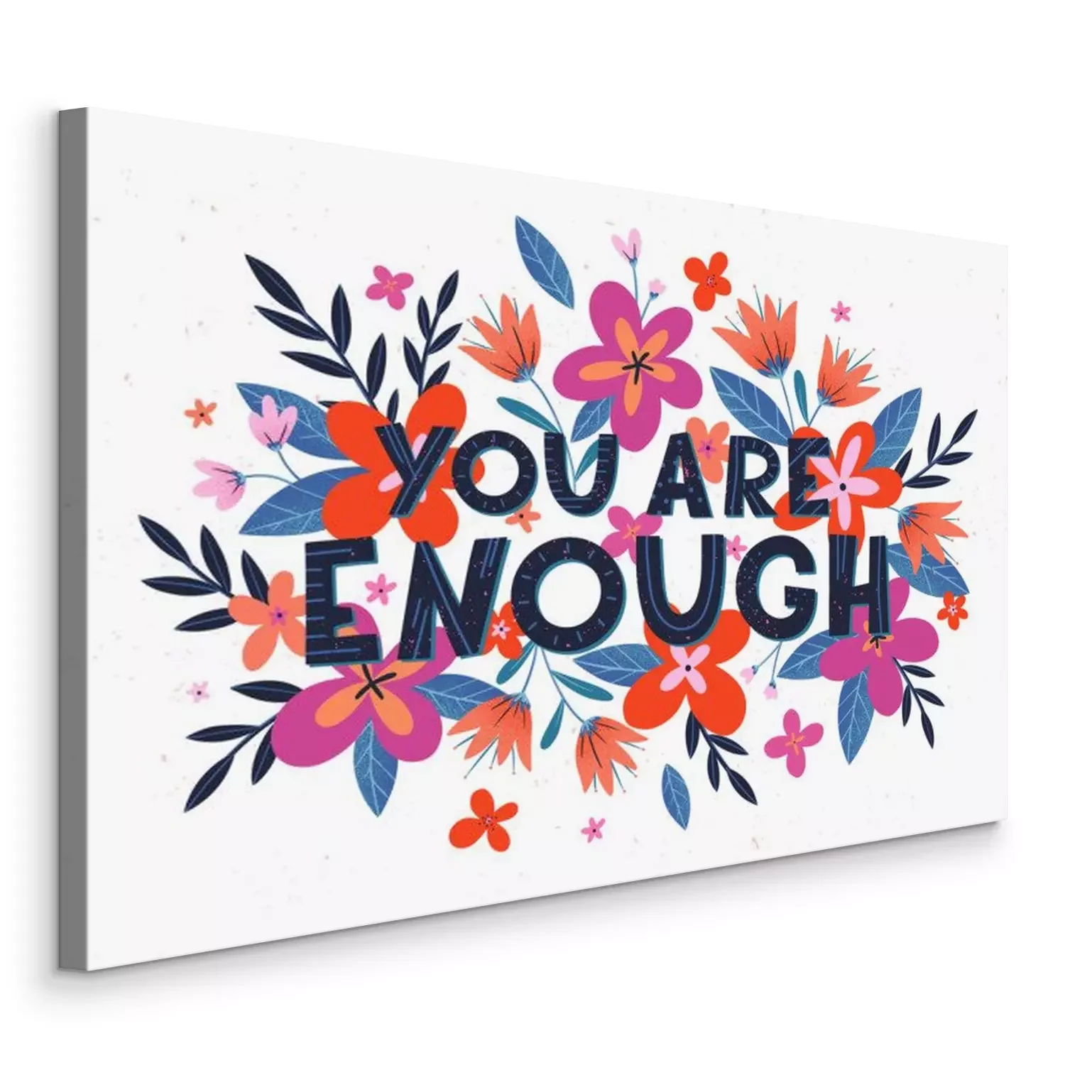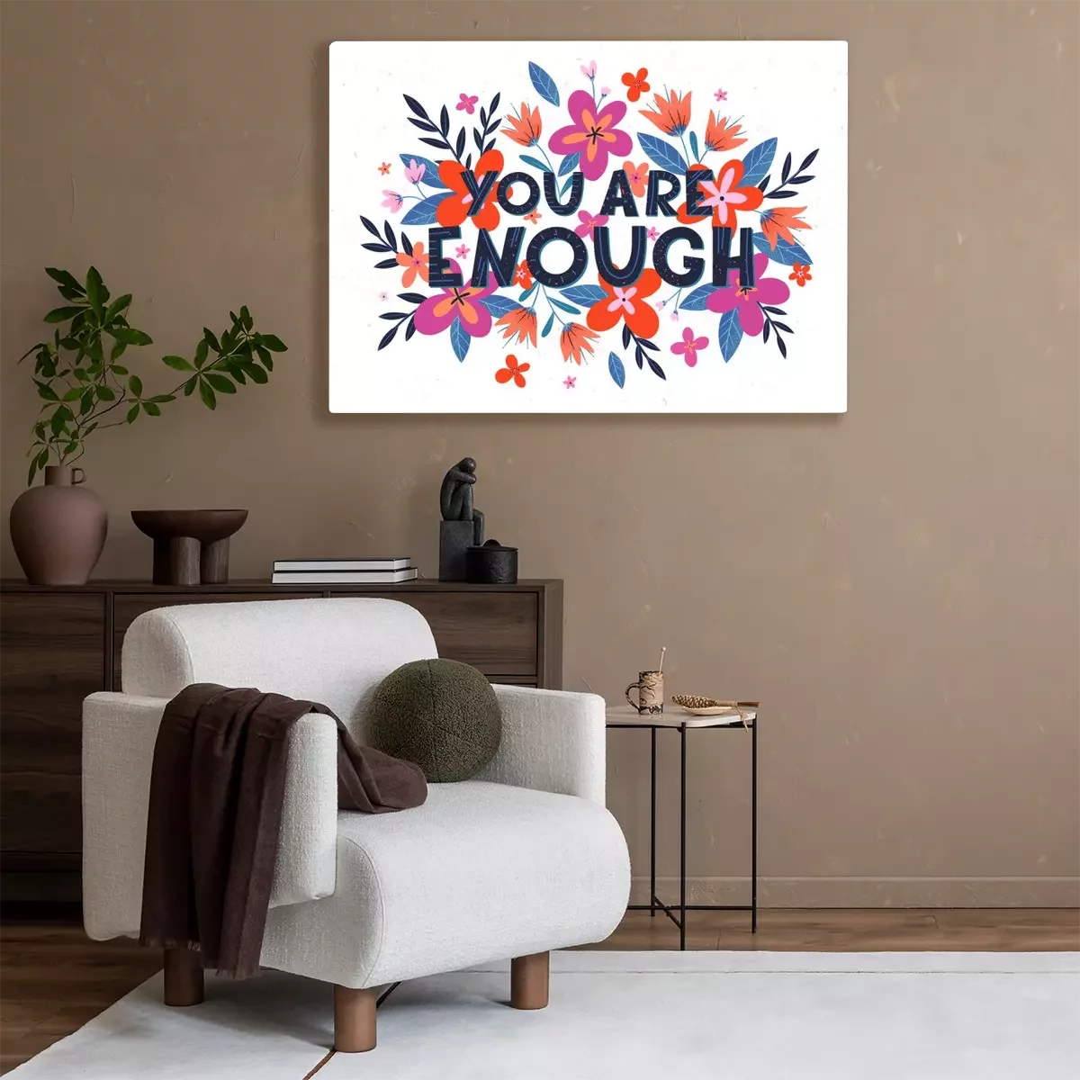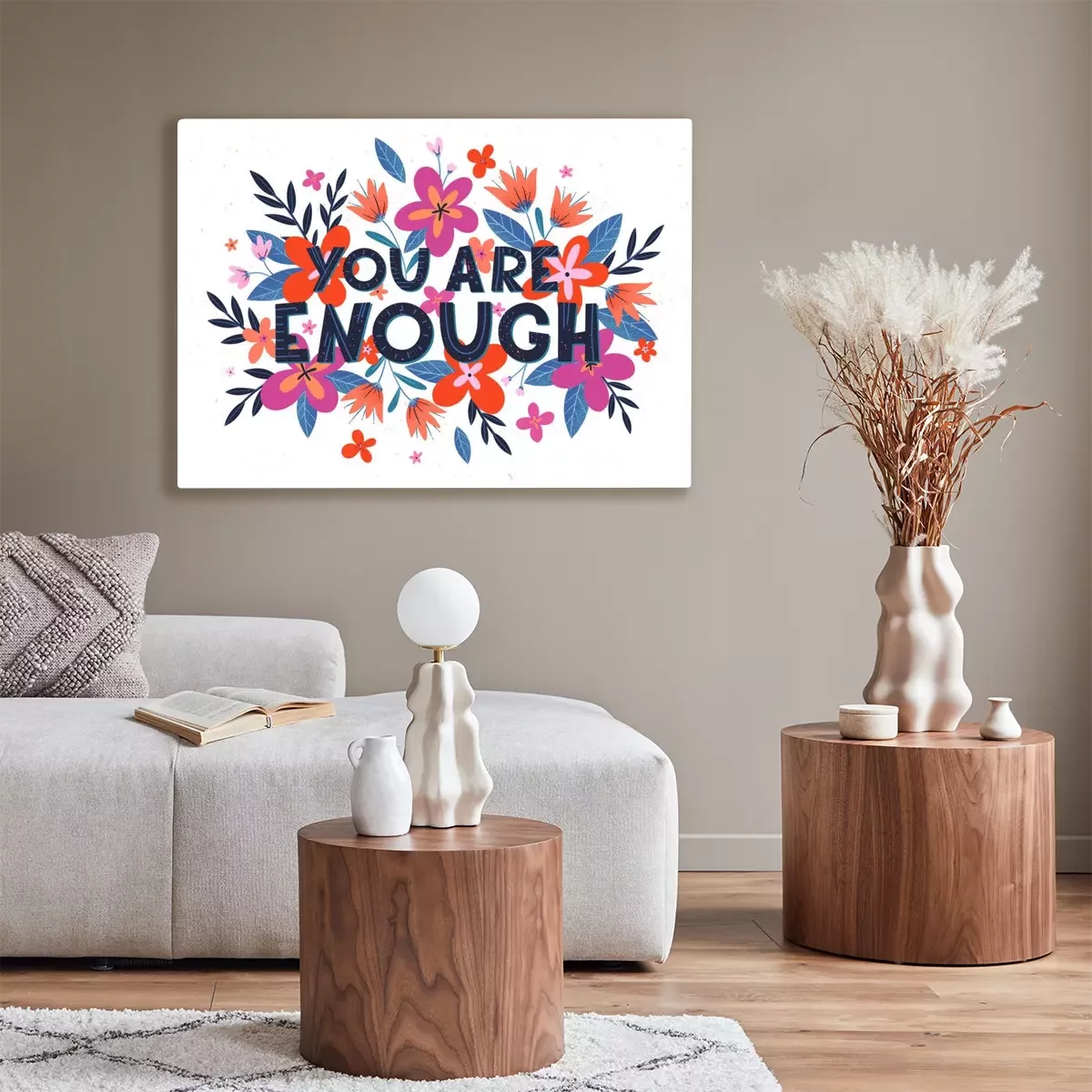 Tableau : You are enough vector illustration, stylish print for t shirts, posters, cards and prints with flowers and floral elements.Feminism quote and woman motivational slogan.Women's movement concept.