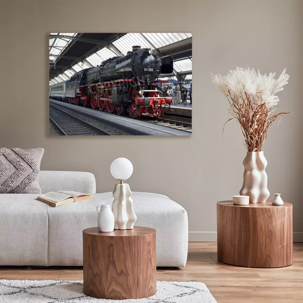 Tableau  Zurich, Suisse - 4 Juin 2011: Un train avec un Pacifique 01 202 locomotive à vapeur rénové est prêt à partir de la gare principale de Zurich (Hauptbahnhof).
